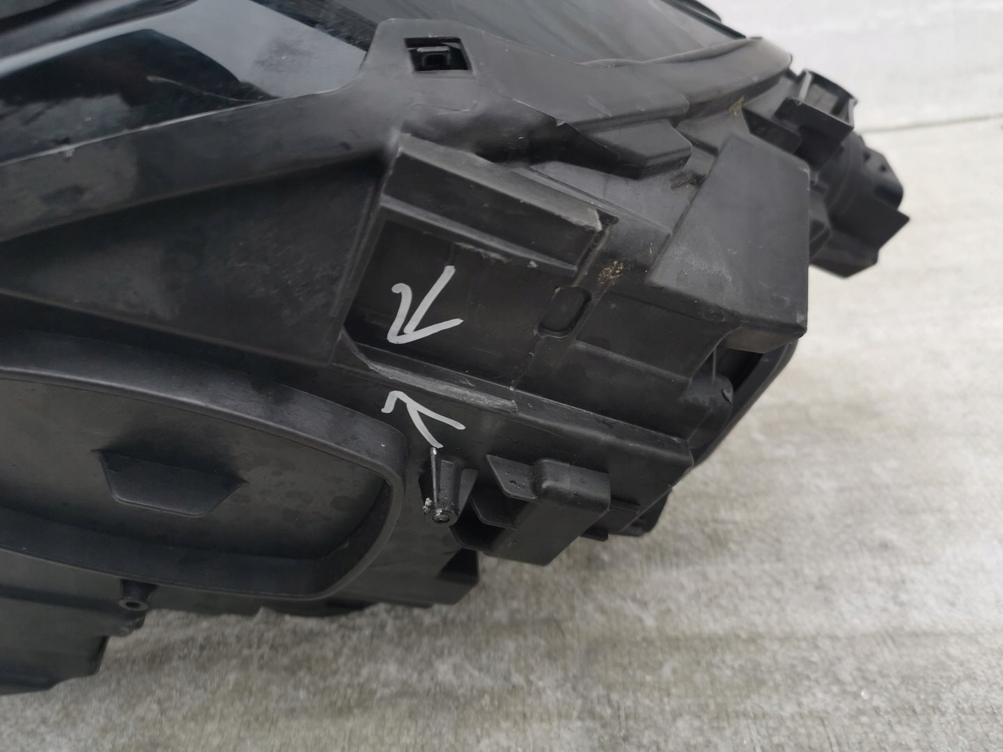 Please be aware that this headlight assembly is from a previously owned vehicle and includes a damaged bracket. However, the bracket damage can often be effectively repaired using an original repair kit, allowing for a reliable and secure installation. This repair can typically be performed by those with basic mechanical skills or by a professional if preferred.