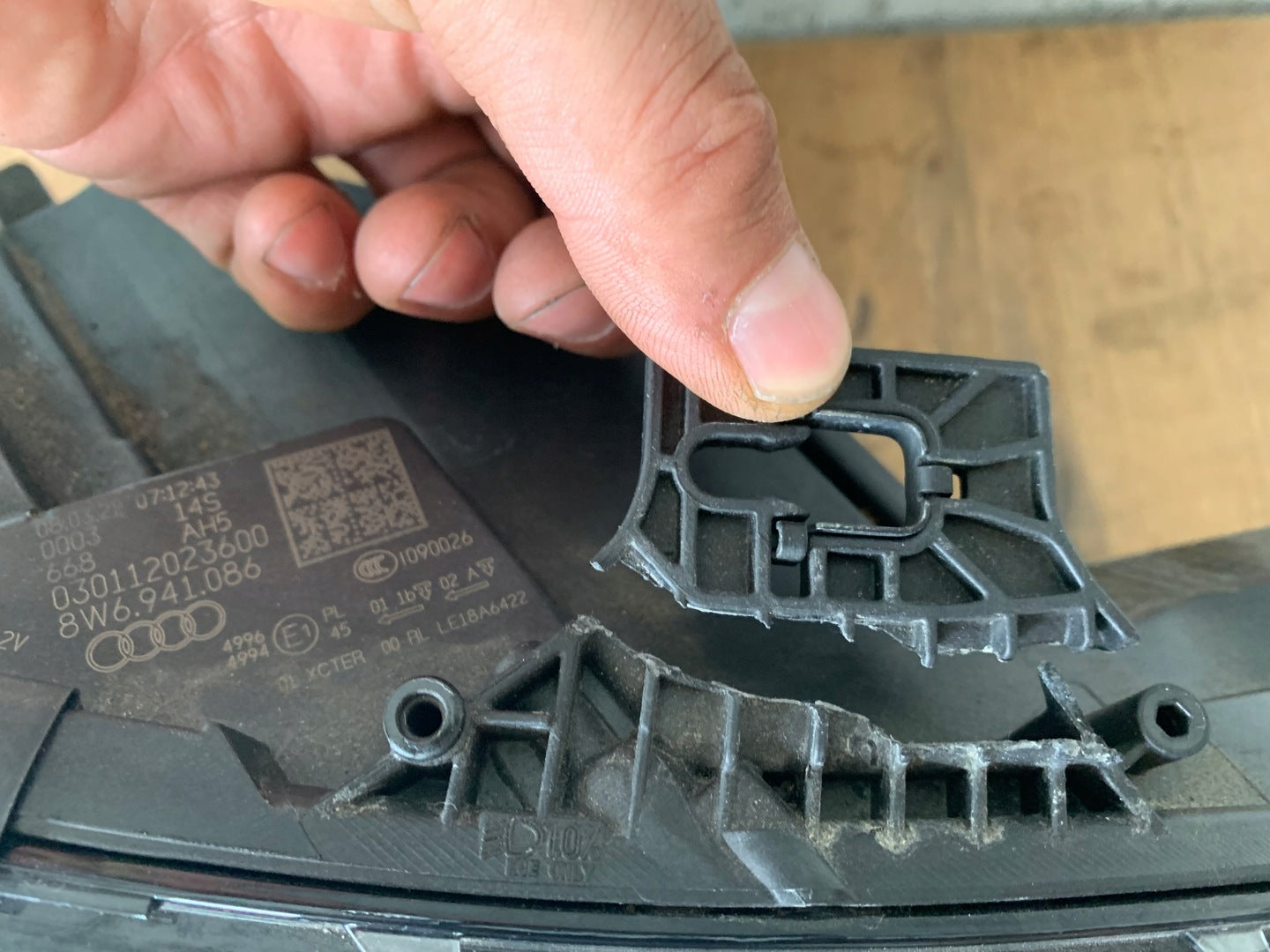Please be aware that this headlight assembly is from a previously owned vehicle and includes a damaged bracket. However, the bracket damage can often be effectively repaired using an original repair kit, allowing for a reliable and secure installation. This repair can typically be performed by those with basic mechanical skills or by a professional if preferred.
