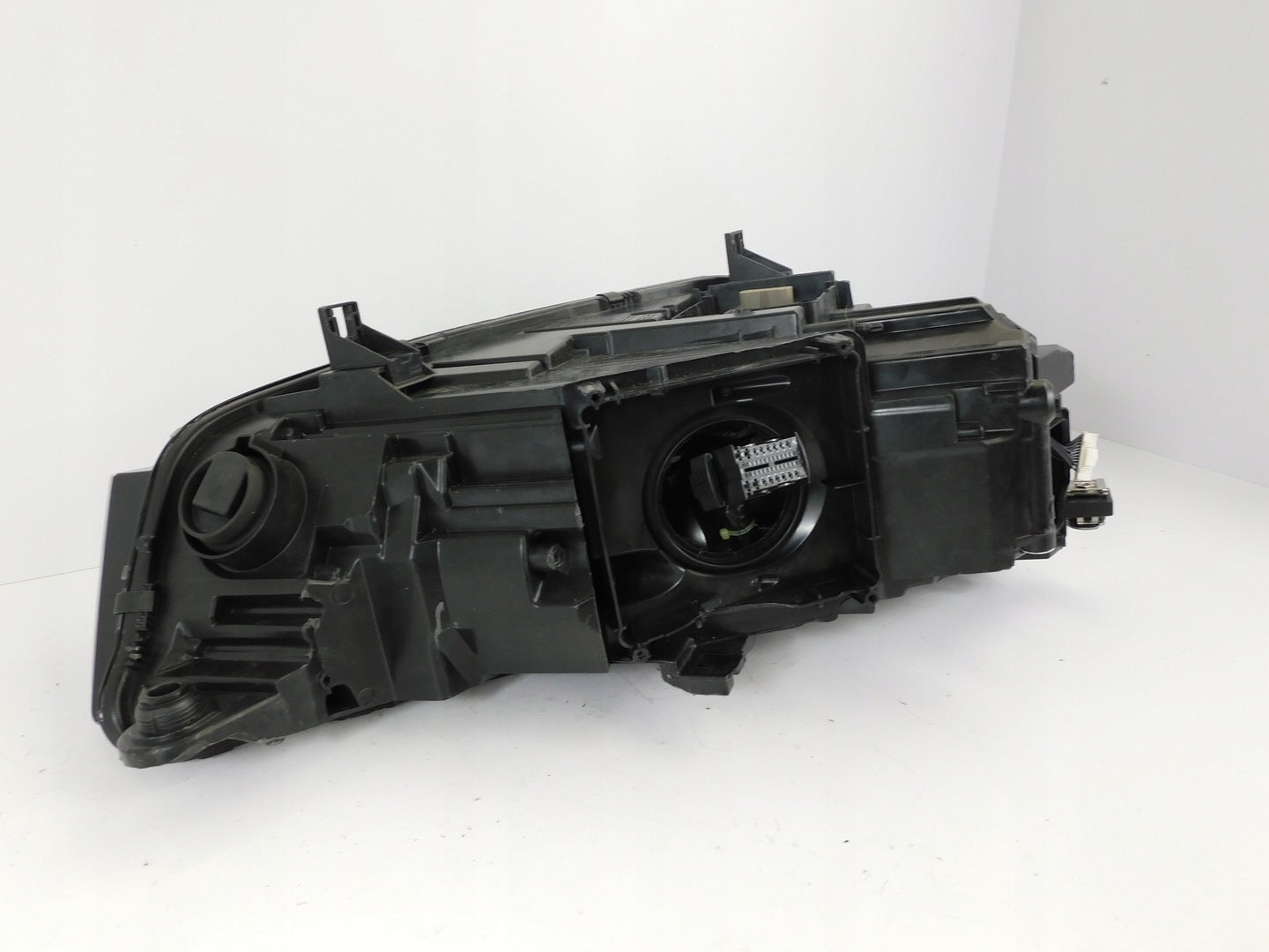 Please be aware that this headlight assembly is from a previously owned vehicle and includes a damaged bracket. However, the bracket damage can often be effectively repaired using an original repair kit, allowing for a reliable and secure installation. This repair can typically be performed by those with basic mechanical skills or by a professional if preferred.