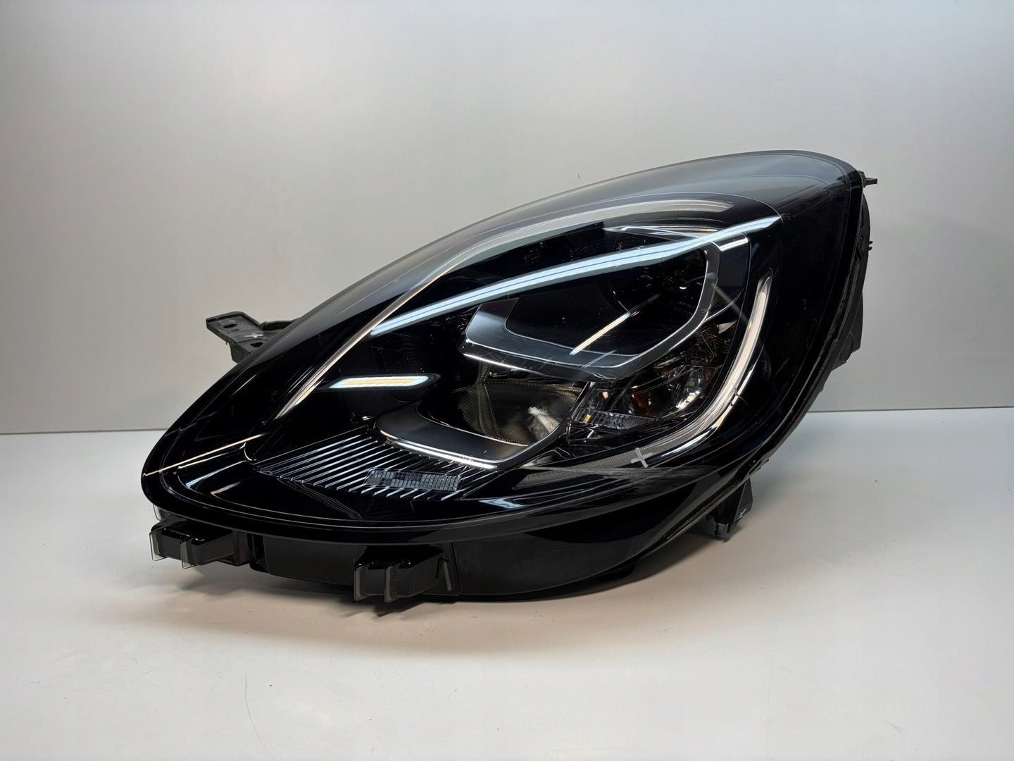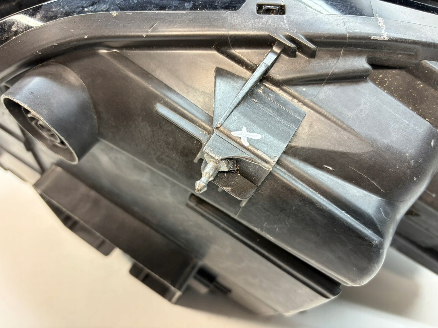 Please be aware that this headlight comes from a previously owned vehicle and has some cosmetic imperfections, including visible scratches on the glass and a damaged bracket. The scratches are superficial and do not impact the headlight's functionality, although they may affect aesthetic appeal for those seeking perfection. The bracket damage can typically be repaired using an original repair kit, enabling a reliable and secure installation that can be performed by individuals with basic mechanical skills or by a professional technician.
