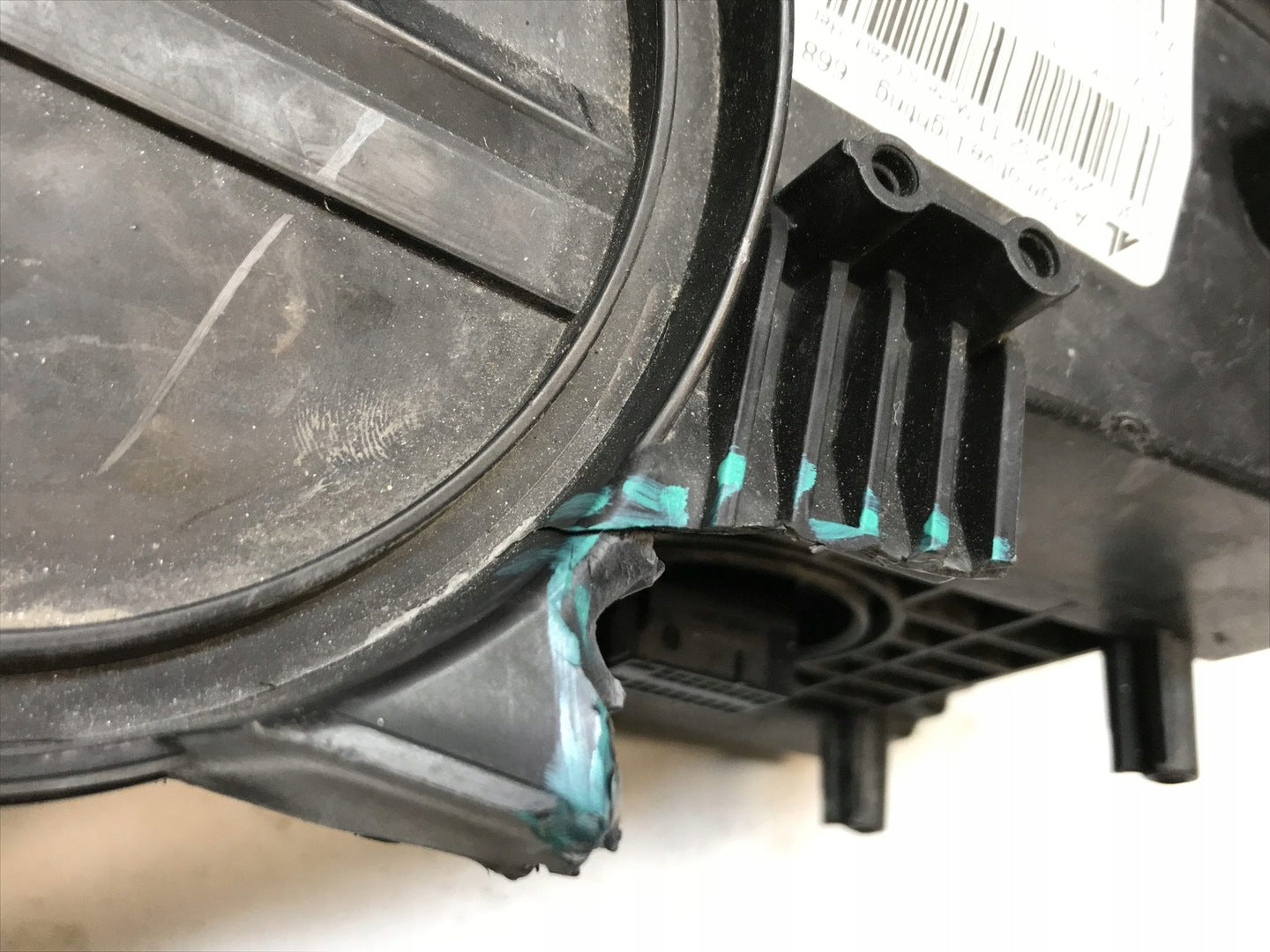 Please be aware that this headlight comes from a previously owned vehicle and has some cosmetic imperfections, including visible scratches on the glass and a damaged bracket. The scratches are superficial and do not impact the headlight's functionality, although they may affect aesthetic appeal for those seeking perfection. The bracket damage can typically be repaired using an original repair kit, enabling a reliable and secure installation that can be performed by individuals with basic mechanical skills or by a professional technician.