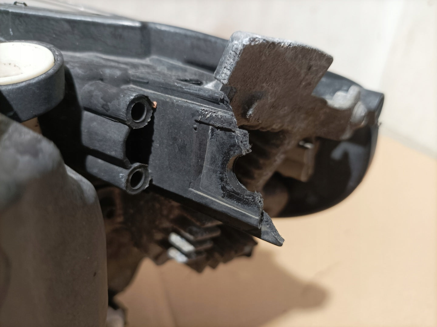 Bitte beachten Sie, dass diese Scheinwerferbaugruppe von einem Fahrzeug aus Vorbesitz stammt und eine beschädigte Halterung enthält. Der Schaden an der Halterung kann jedoch oft mit einem Original-Reparatursatz repariert werden, so dass eine zuverlässige und sichere Installation möglich ist. Diese Reparatur kann in der Regel von Personen mit grundlegenden mechanischen Fähigkeiten oder auf Wunsch von einem Fachmann durchgeführt werden.