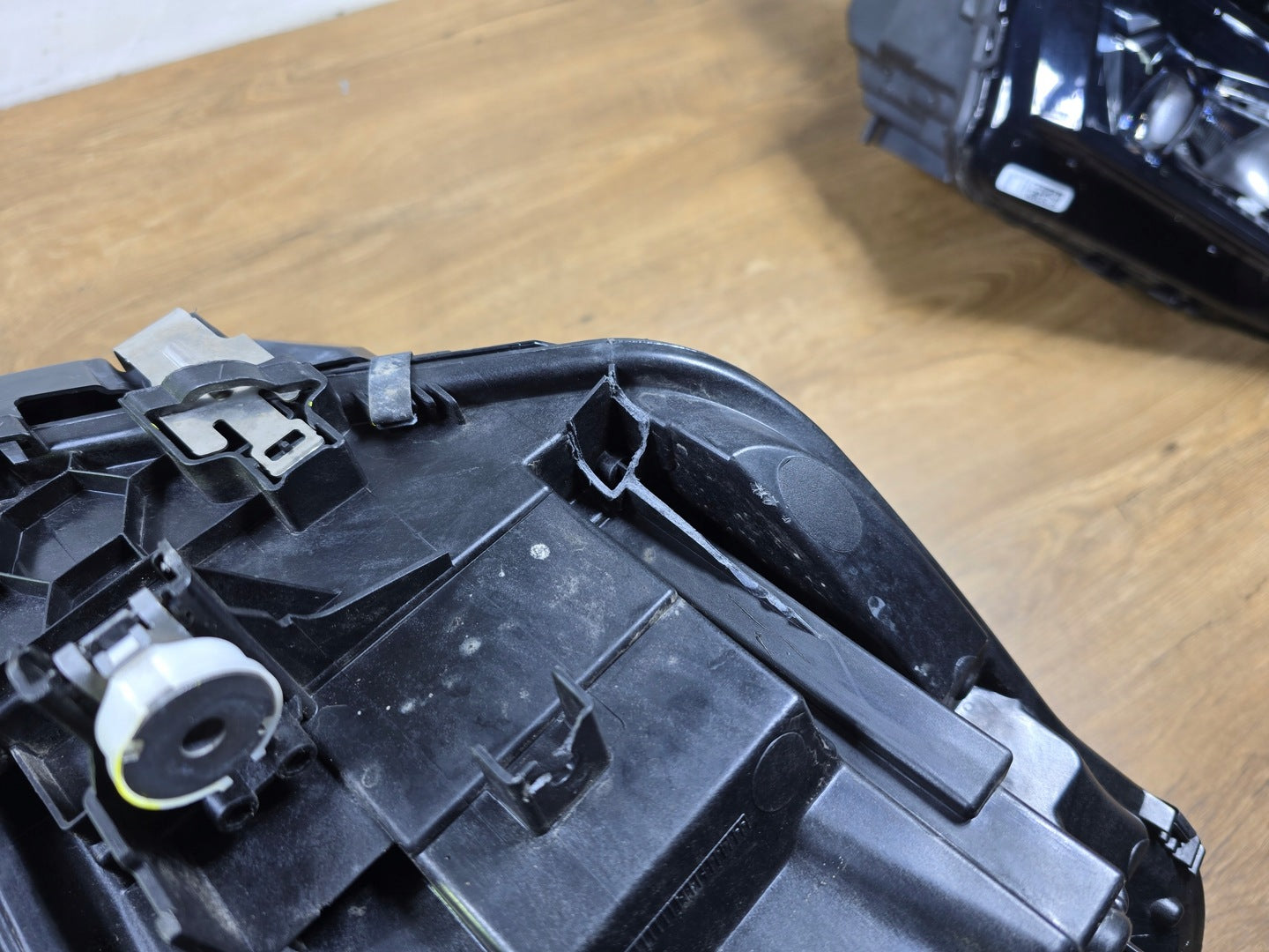 Bitte beachten Sie, dass diese Scheinwerferbaugruppe von einem Fahrzeug aus Vorbesitz stammt und eine beschädigte Halterung enthält. Der Schaden an der Halterung kann jedoch oft mit einem Original-Reparatursatz repariert werden, so dass eine zuverlässige und sichere Installation möglich ist. Diese Reparatur kann in der Regel von Personen mit grundlegenden mechanischen Fähigkeiten oder auf Wunsch von einem Fachmann durchgeführt werden.