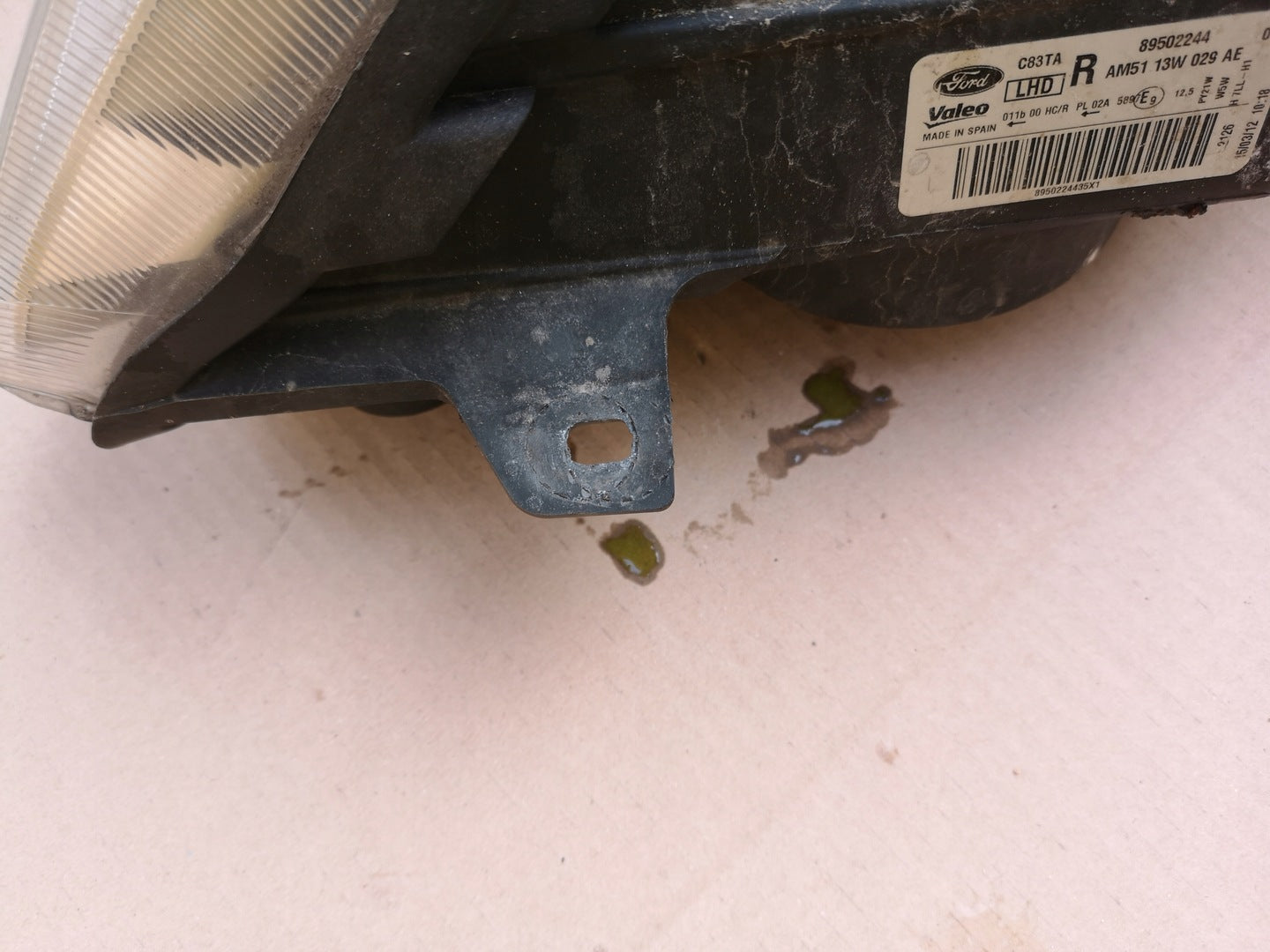 Bitte beachten Sie, dass diese Scheinwerferbaugruppe von einem Fahrzeug aus Vorbesitz stammt und eine beschädigte Halterung enthält. Der Schaden an der Halterung kann jedoch oft mit einem Original-Reparatursatz repariert werden, so dass eine zuverlässige und sichere Installation möglich ist. Diese Reparatur kann in der Regel von Personen mit grundlegenden mechanischen Fähigkeiten oder auf Wunsch von einem Fachmann durchgeführt werden.