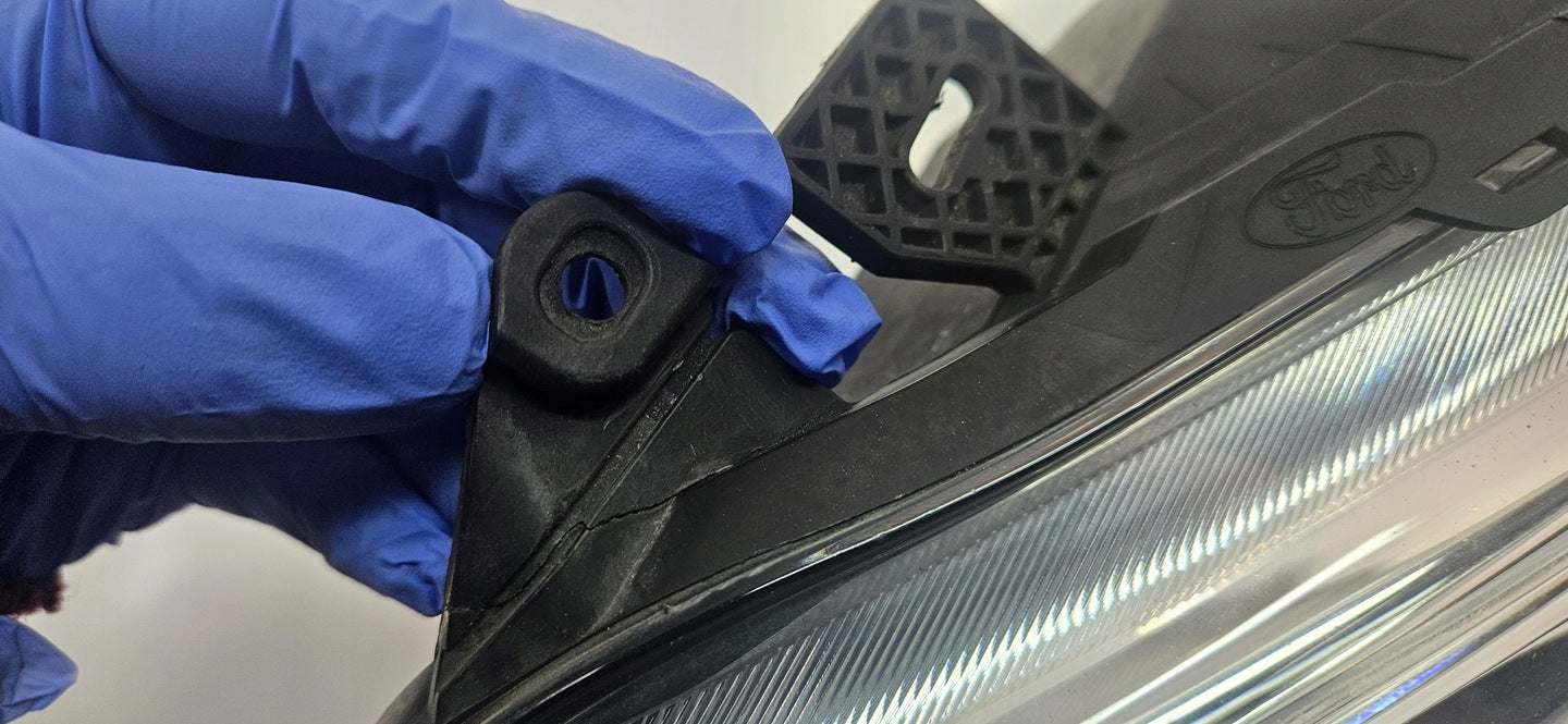 Bitte beachten Sie, dass diese Scheinwerferbaugruppe von einem Fahrzeug aus Vorbesitz stammt und eine beschädigte Halterung enthält. Der Schaden an der Halterung kann jedoch oft mit einem Original-Reparatursatz repariert werden, so dass eine zuverlässige und sichere Installation möglich ist. Diese Reparatur kann in der Regel von Personen mit grundlegenden mechanischen Fähigkeiten oder auf Wunsch von einem Fachmann durchgeführt werden.