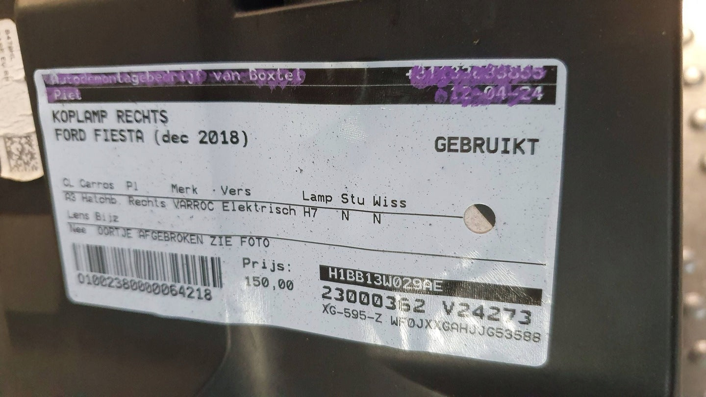 Revitalize your FORD FIESTA with this durable, cost-effective used headlight. Perfect for direct replacement, it ensures that your car maintains its original look and performance. Get yours today and light up your journey!