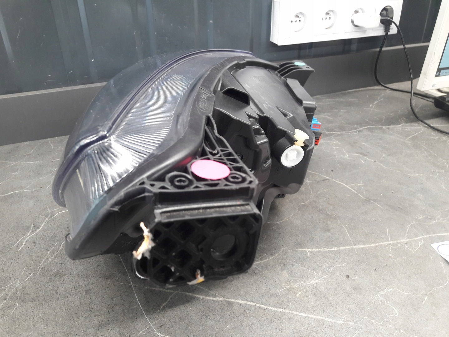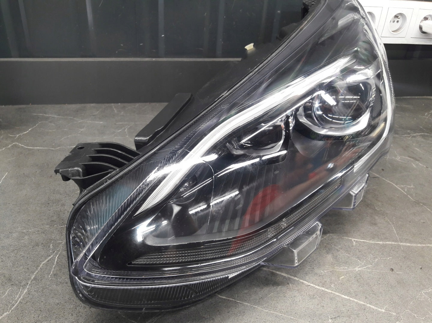 Bitte beachten Sie, dass diese Scheinwerferbaugruppe von einem Fahrzeug aus Vorbesitz stammt und eine beschädigte Halterung enthält. Der Schaden an der Halterung kann jedoch oft mit einem Original-Reparatursatz repariert werden, so dass eine zuverlässige und sichere Installation möglich ist. Diese Reparatur kann in der Regel von Personen mit grundlegenden mechanischen Fähigkeiten oder auf Wunsch von einem Fachmann durchgeführt werden.