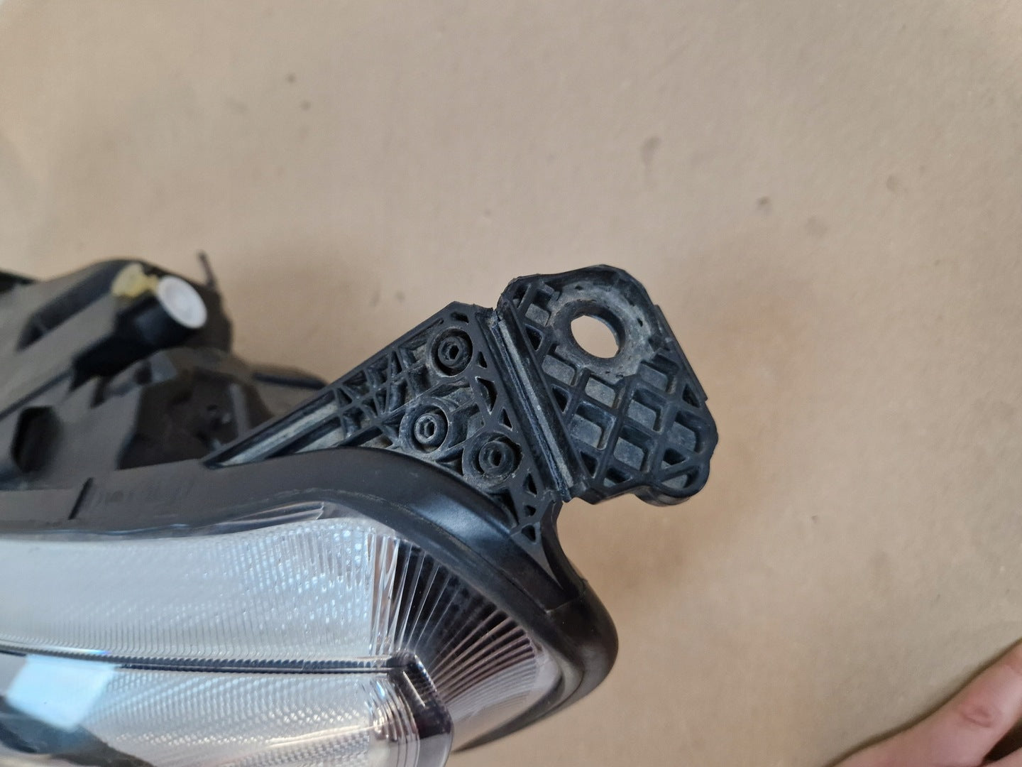 Please be aware that this headlight assembly is from a previously owned vehicle and includes a damaged bracket. However, the bracket damage can often be effectively repaired using an original repair kit, allowing for a reliable and secure installation. This repair can typically be performed by those with basic mechanical skills or by a professional if preferred.