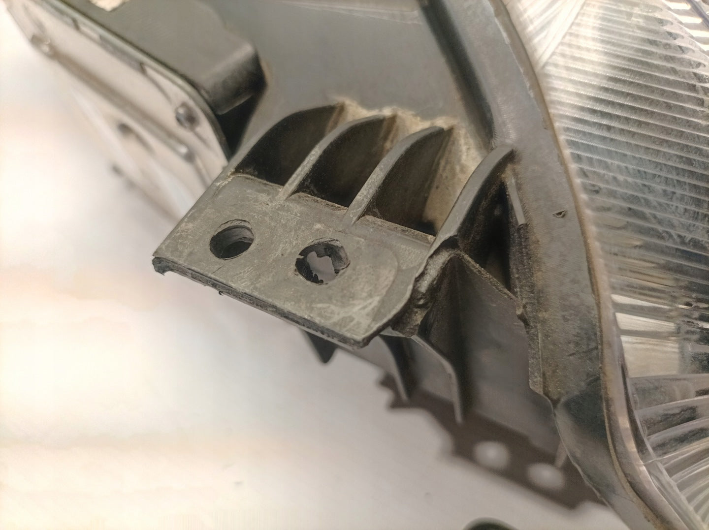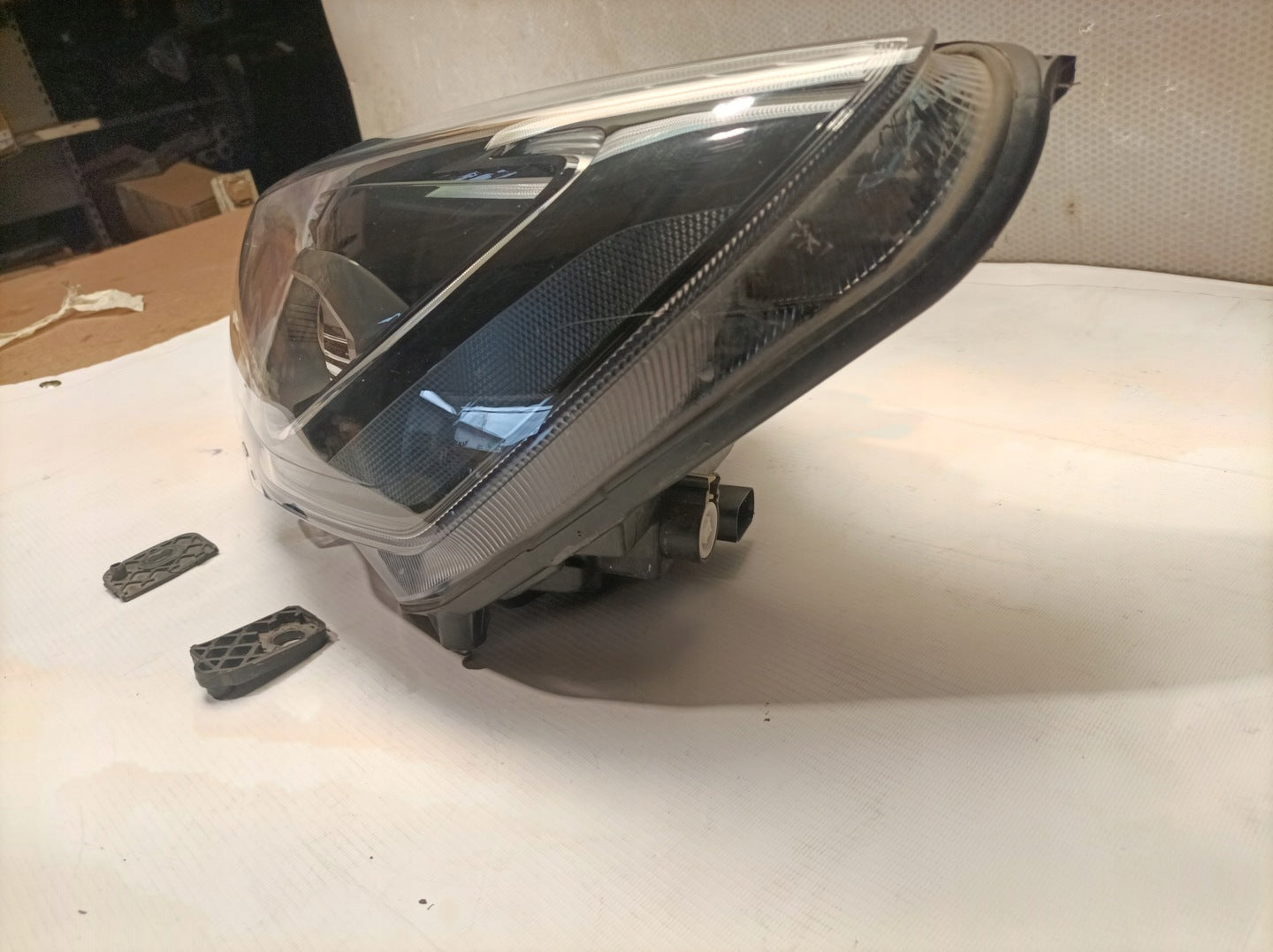 Please be aware that this headlight assembly is from a previously owned vehicle and includes a damaged bracket. However, the bracket damage can often be effectively repaired using an original repair kit, allowing for a reliable and secure installation. This repair can typically be performed by those with basic mechanical skills or by a professional if preferred.