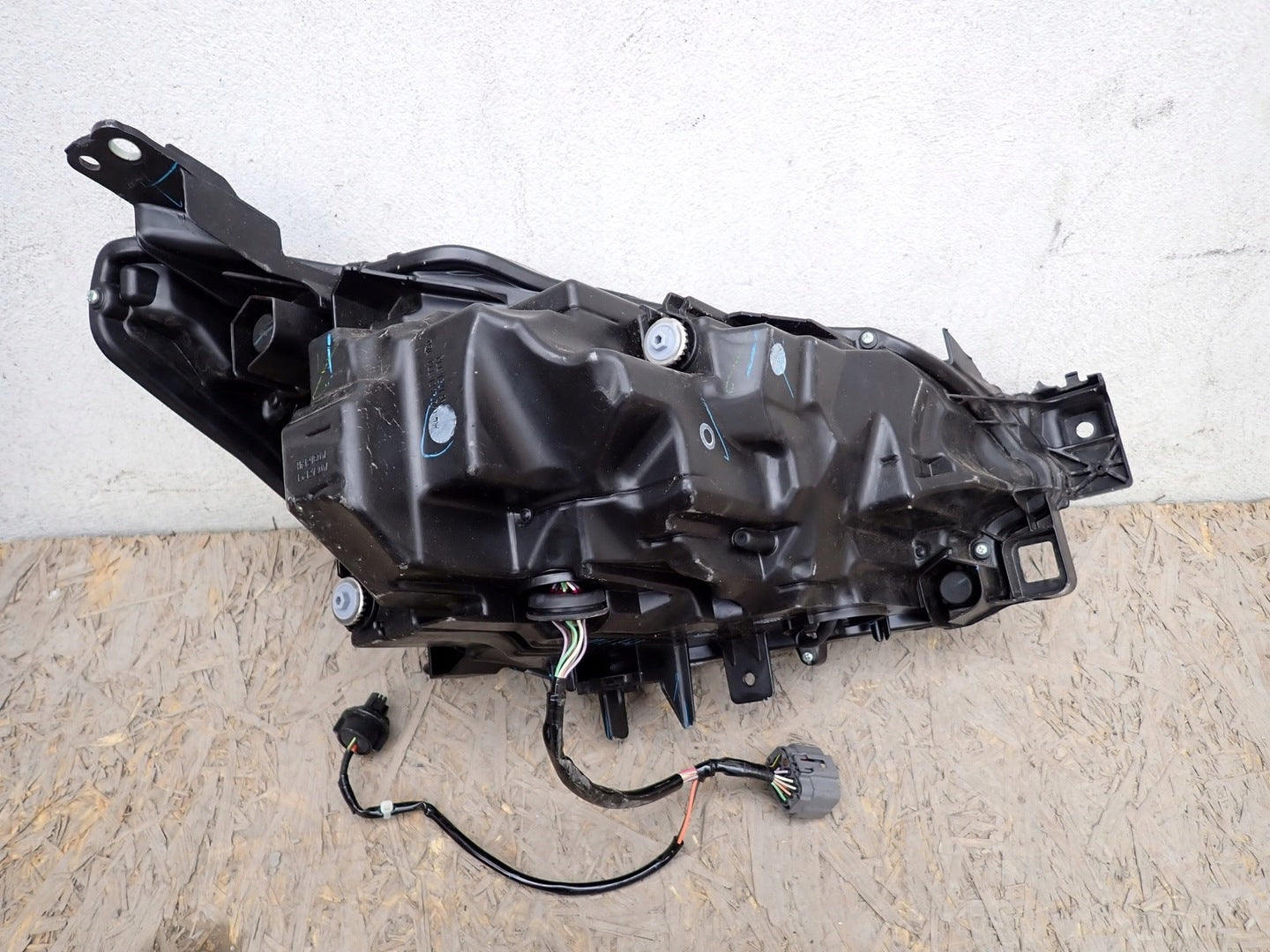 Please be aware that this headlight comes from a previously owned vehicle and has some cosmetic imperfections, including visible scratches on the glass and a damaged bracket. The scratches are superficial and do not impact the headlight's functionality, although they may affect aesthetic appeal for those seeking perfection. The bracket damage can typically be repaired using an original repair kit, enabling a reliable and secure installation that can be performed by individuals with basic mechanical skills or by a professional technician.