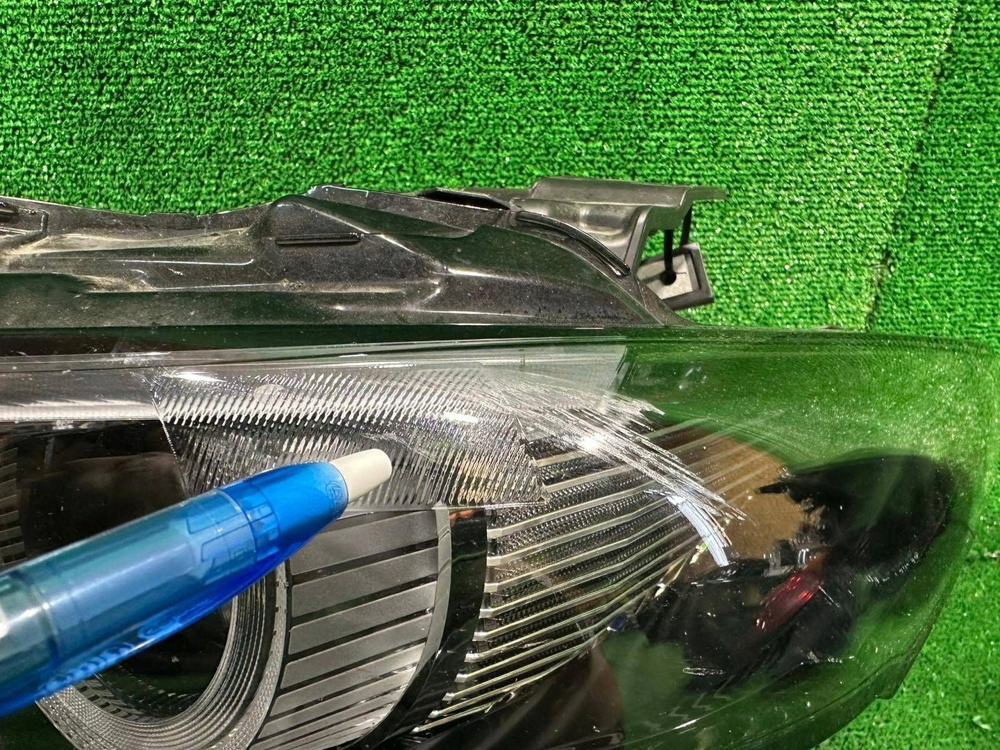 Please be aware that this headlight comes from a previously owned vehicle and has some cosmetic imperfections, including visible scratches on the glass and a damaged bracket. The scratches are superficial and do not impact the headlight's functionality, although they may affect aesthetic appeal for those seeking perfection. The bracket damage can typically be repaired using an original repair kit, enabling a reliable and secure installation that can be performed by individuals with basic mechanical skills or by a professional technician.