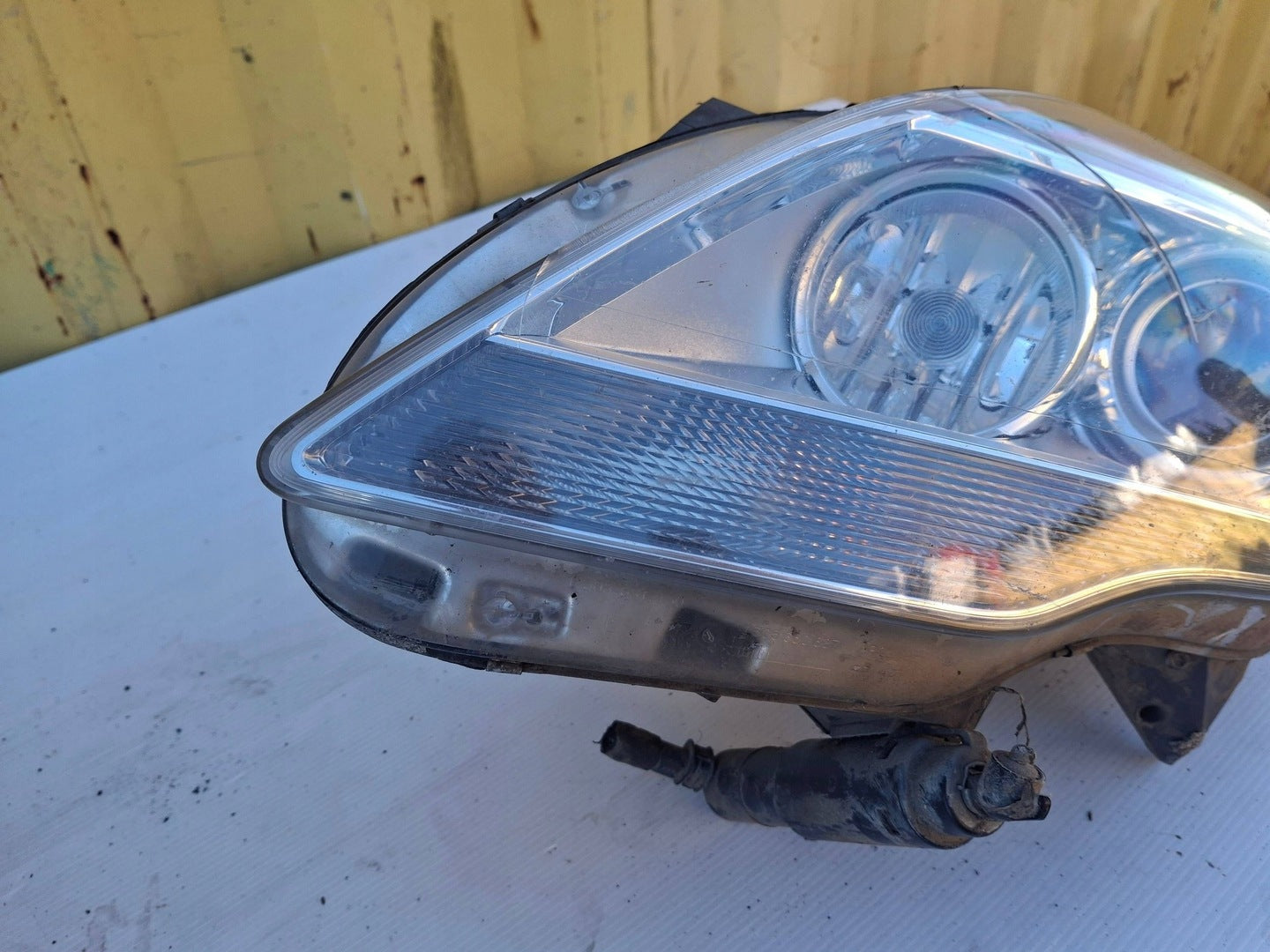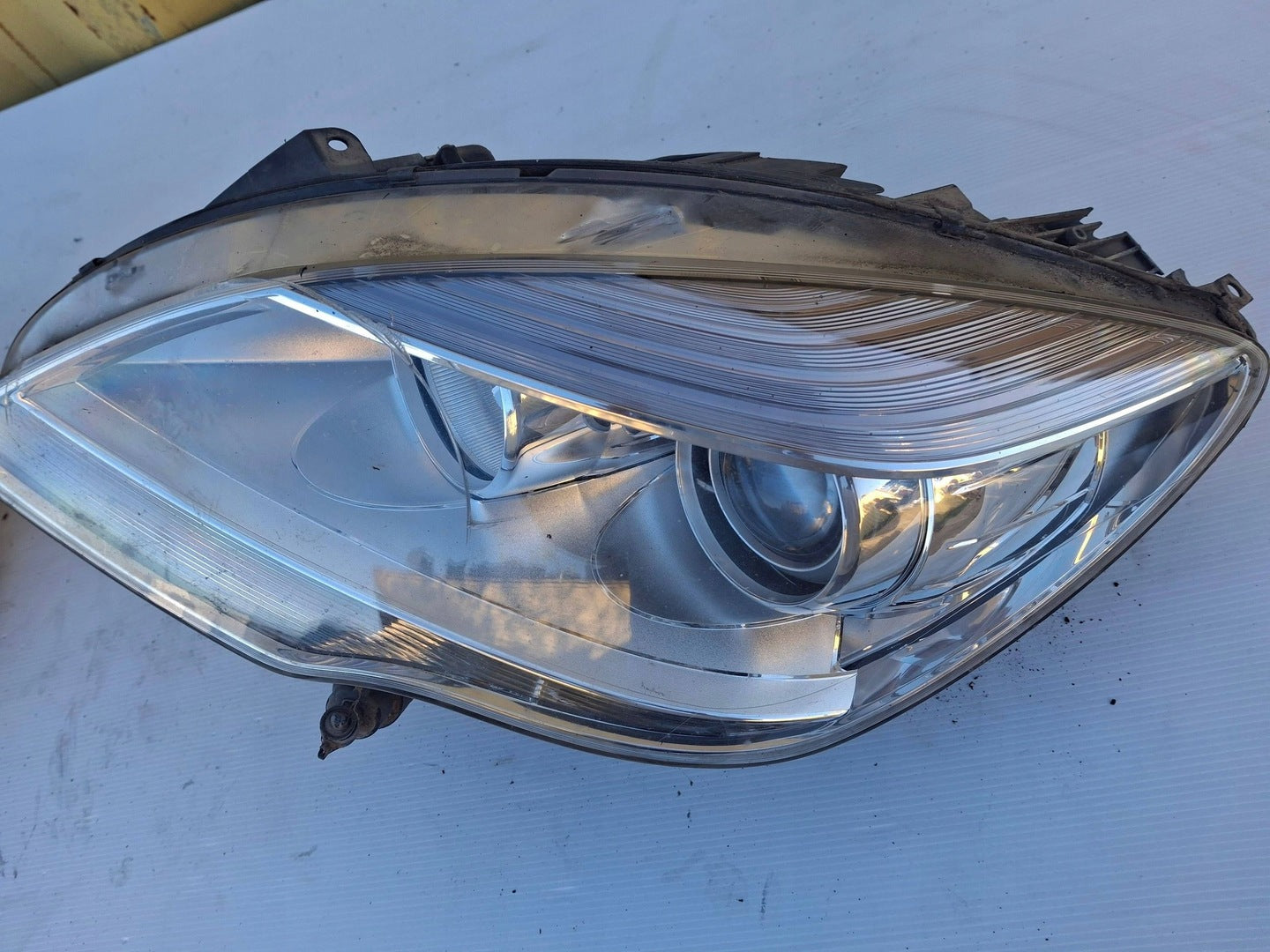 Please be aware that this headlight assembly is from a previously owned vehicle and includes a damaged bracket. However, the bracket damage can often be effectively repaired using an original repair kit, allowing for a reliable and secure installation. This repair can typically be performed by those with basic mechanical skills or by a professional if preferred.