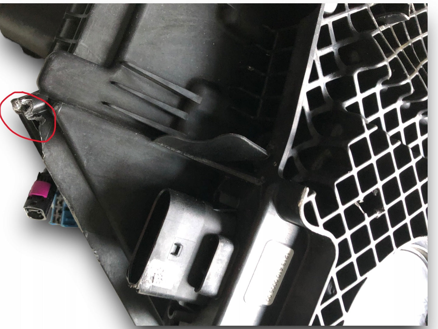 Please be aware that this headlight assembly is from a previously owned vehicle and includes a damaged bracket. However, the bracket damage can often be effectively repaired using an original repair kit, allowing for a reliable and secure installation. This repair can typically be performed by those with basic mechanical skills or by a professional if preferred.