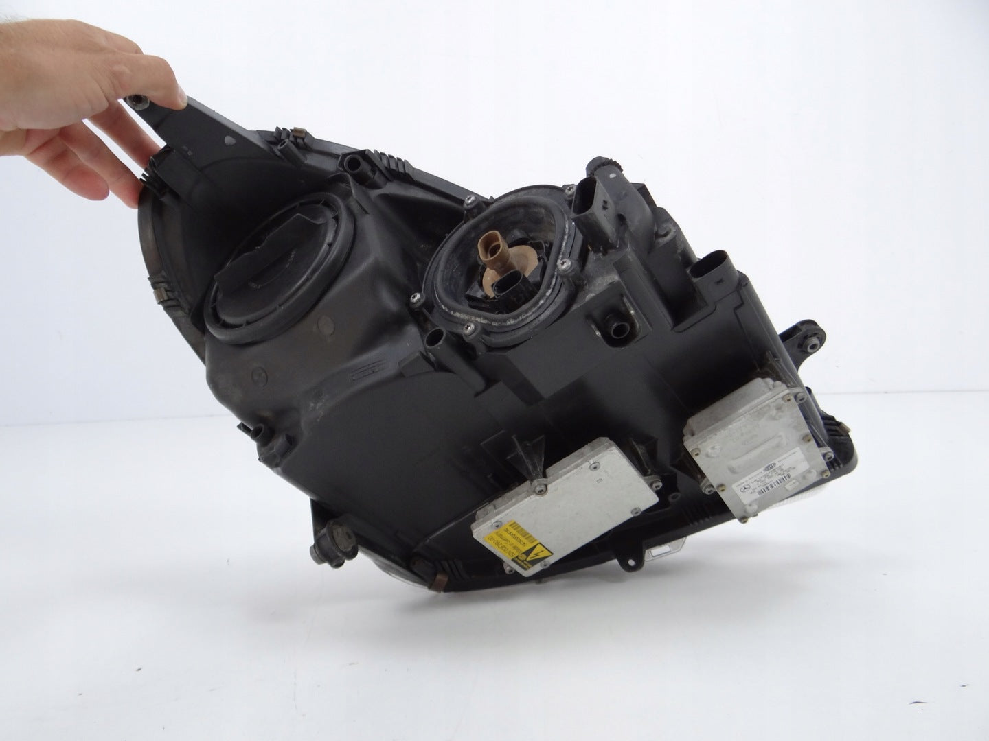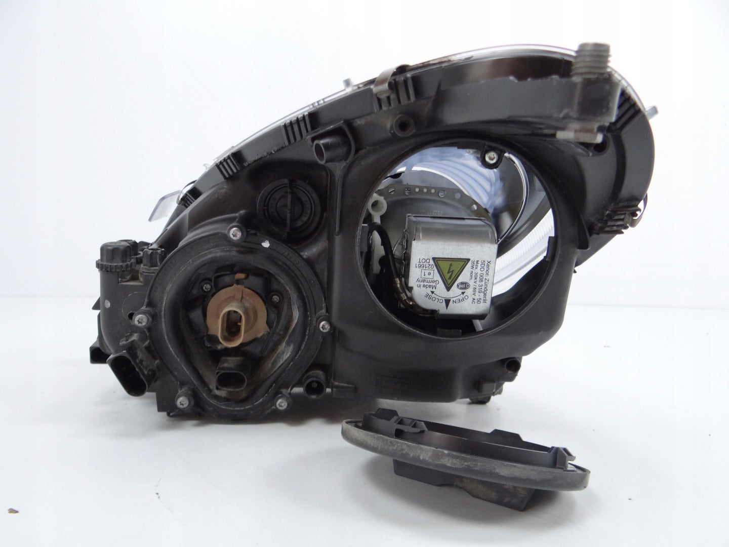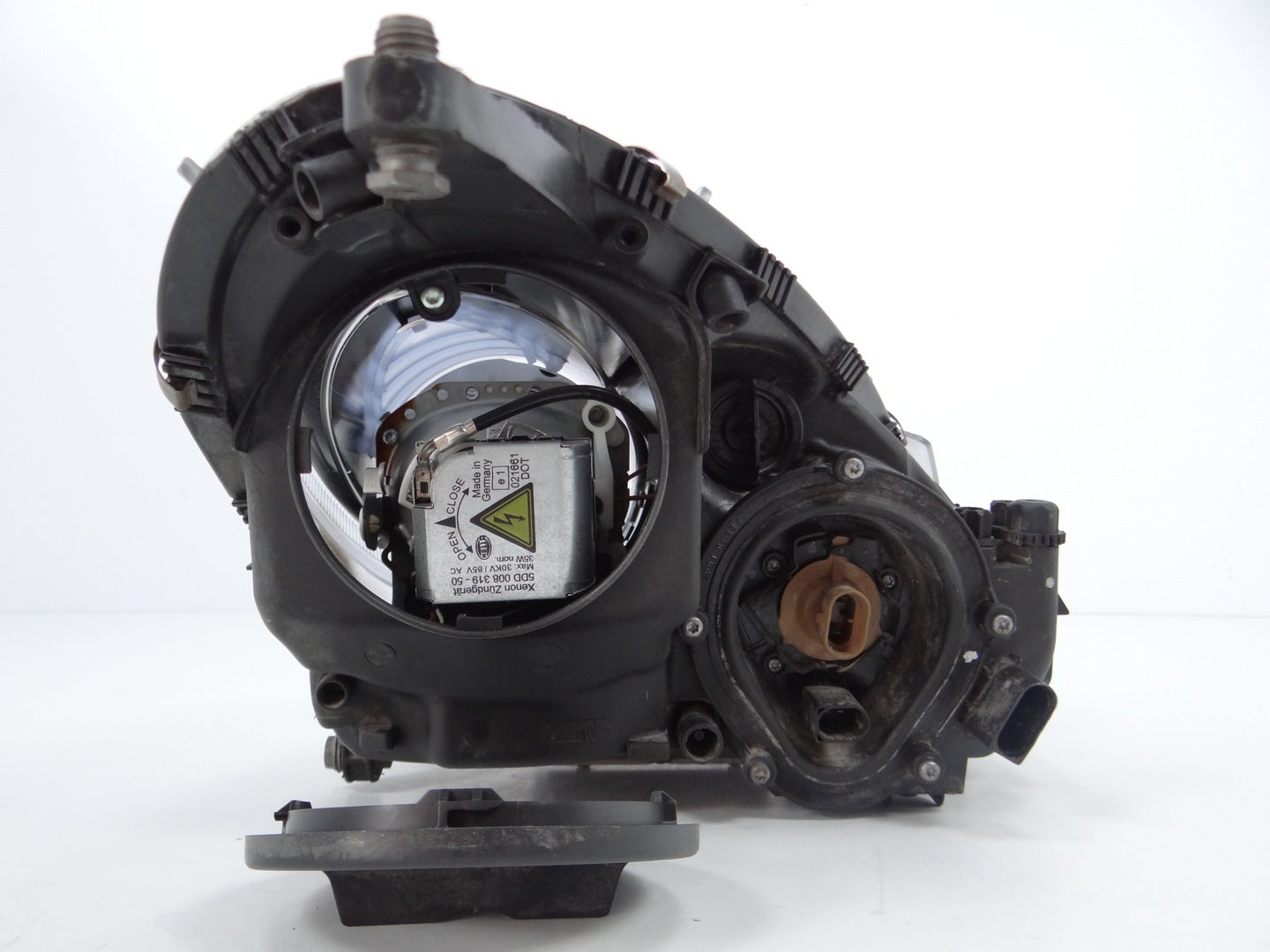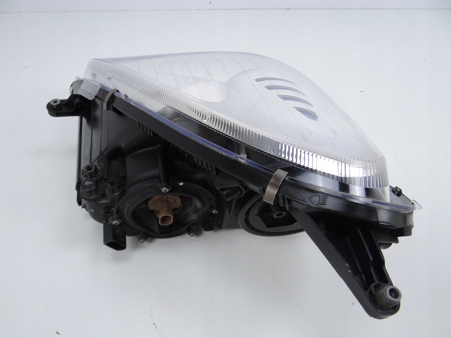 Bitte beachten Sie, dass diese Scheinwerferbaugruppe von einem Fahrzeug aus Vorbesitz stammt und eine beschädigte Halterung enthält. Der Schaden an der Halterung kann jedoch oft mit einem Original-Reparatursatz repariert werden, so dass eine zuverlässige und sichere Installation möglich ist. Diese Reparatur kann in der Regel von Personen mit grundlegenden mechanischen Fähigkeiten oder auf Wunsch von einem Fachmann durchgeführt werden.