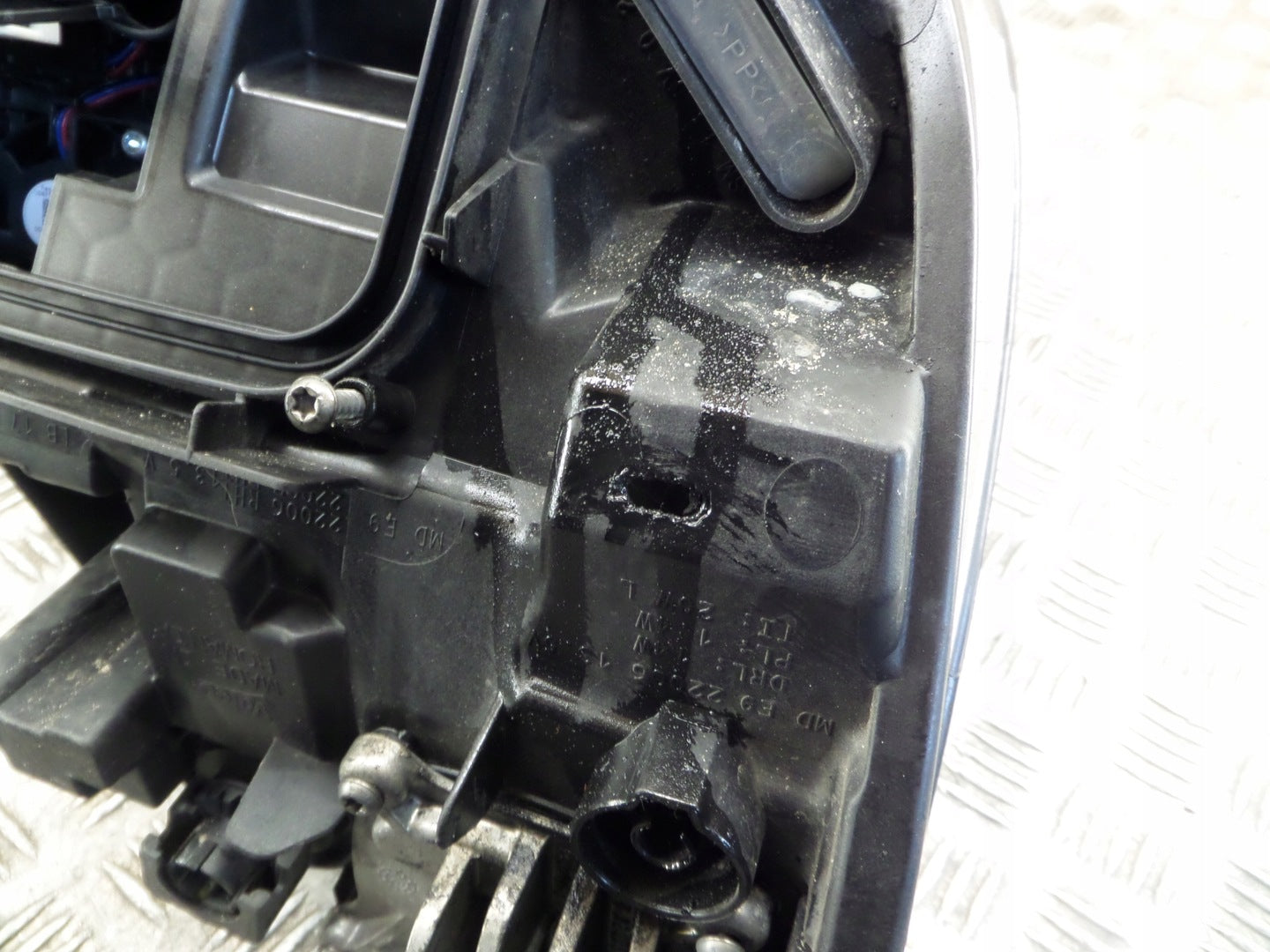 Please be aware that this headlight assembly is from a previously owned vehicle and includes a damaged bracket. However, the bracket damage can often be effectively repaired using an original repair kit, allowing for a reliable and secure installation. This repair can typically be performed by those with basic mechanical skills or by a professional if preferred.