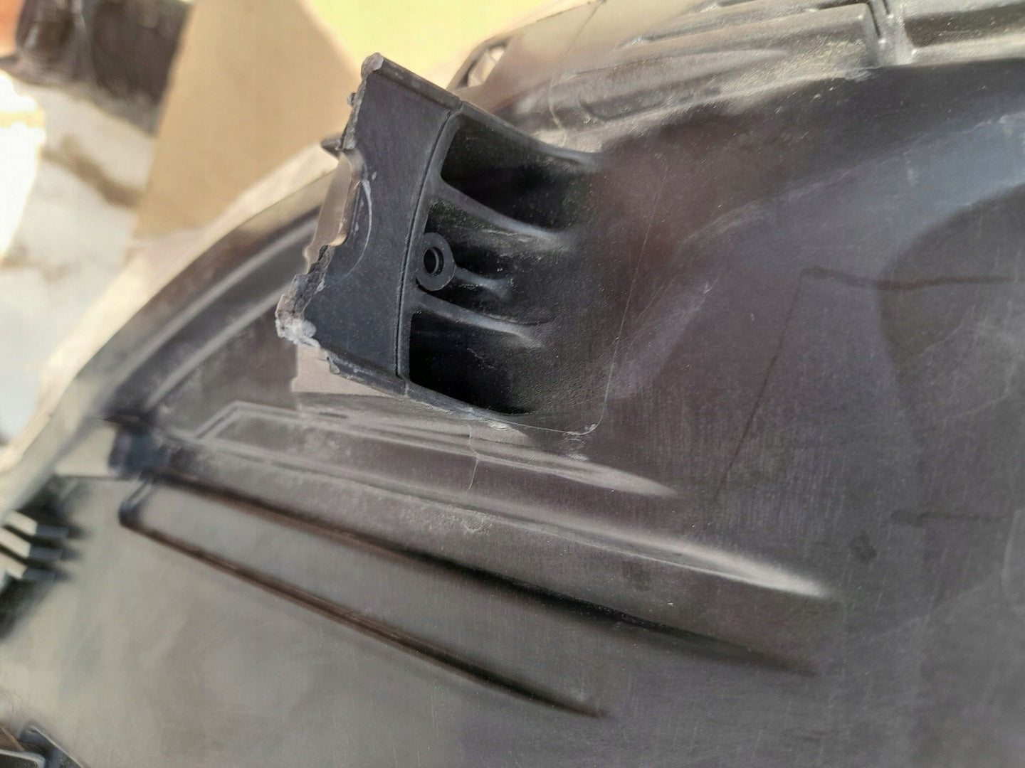 Please be aware that this headlight comes from a previously owned vehicle and has some cosmetic imperfections, including visible scratches on the glass and a damaged bracket. The scratches are superficial and do not impact the headlight's functionality, although they may affect aesthetic appeal for those seeking perfection. The bracket damage can typically be repaired using an original repair kit, enabling a reliable and secure installation that can be performed by individuals with basic mechanical skills or by a professional technician.