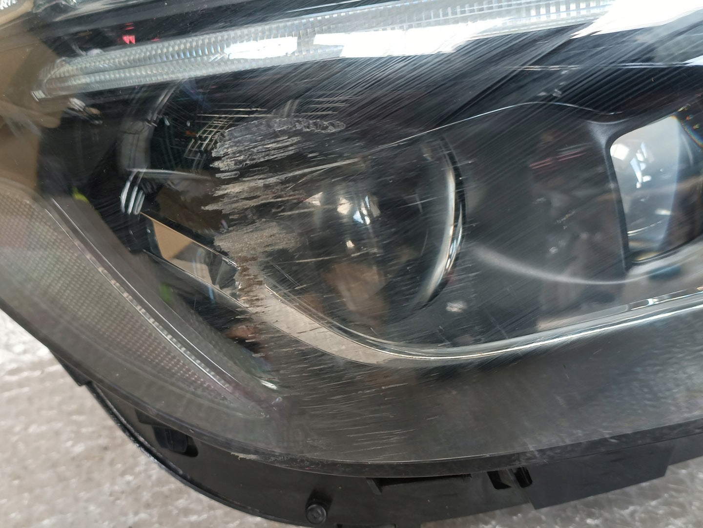 Please note that this headlight comes from a previously owned vehicle and has some cosmetic imperfections. There are visible scratches on the glass which do not affect the functionality but should be considered if aesthetic perfection is a priority. The scratches are superficial and the headlight remains fully operational, providing a practical solution for those looking to replace damaged or malfunctioning headlights without the cost of a brand-new part.