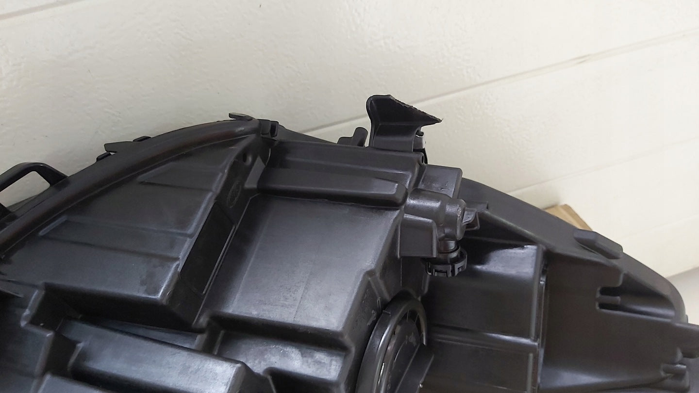 Please be aware that this headlight assembly is from a previously owned vehicle and includes a damaged bracket. However, the bracket damage can often be effectively repaired using an original repair kit, allowing for a reliable and secure installation. This repair can typically be performed by those with basic mechanical skills or by a professional if preferred.