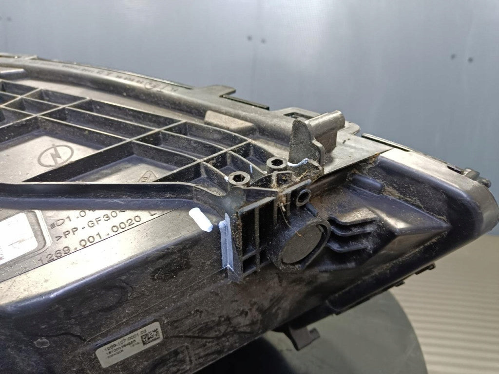 Please be aware that this headlight comes from a previously owned vehicle and has some cosmetic imperfections, including visible scratches on the glass and a damaged bracket. The scratches are superficial and do not impact the headlight's functionality, although they may affect aesthetic appeal for those seeking perfection. The bracket damage can typically be repaired using an original repair kit, enabling a reliable and secure installation that can be performed by individuals with basic mechanical skills or by a professional technician.