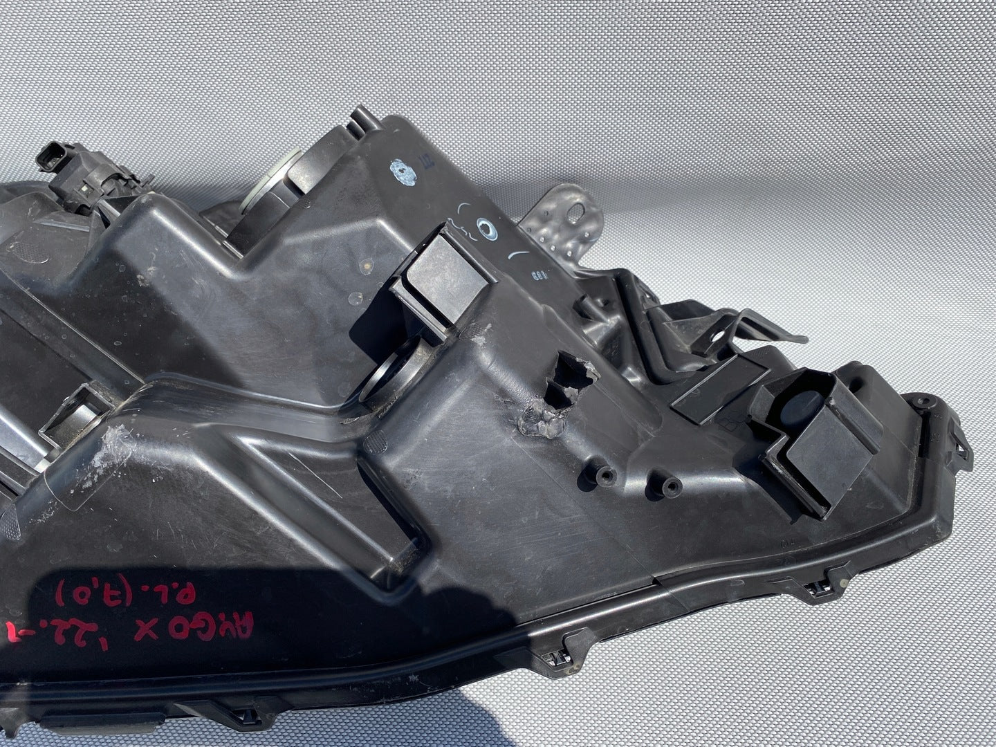 Please be aware that this headlight assembly is from a previously owned vehicle and includes a damaged bracket. However, the bracket damage can often be effectively repaired using an original repair kit, allowing for a reliable and secure installation. This repair can typically be performed by those with basic mechanical skills or by a professional if preferred.
