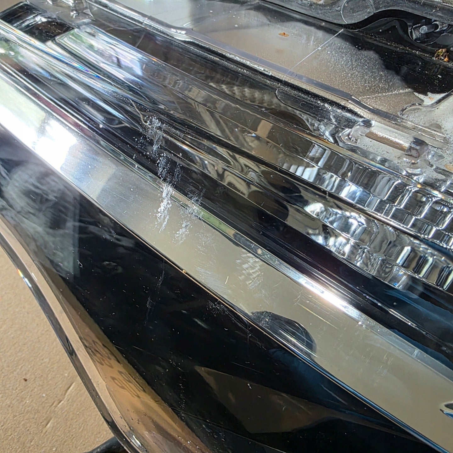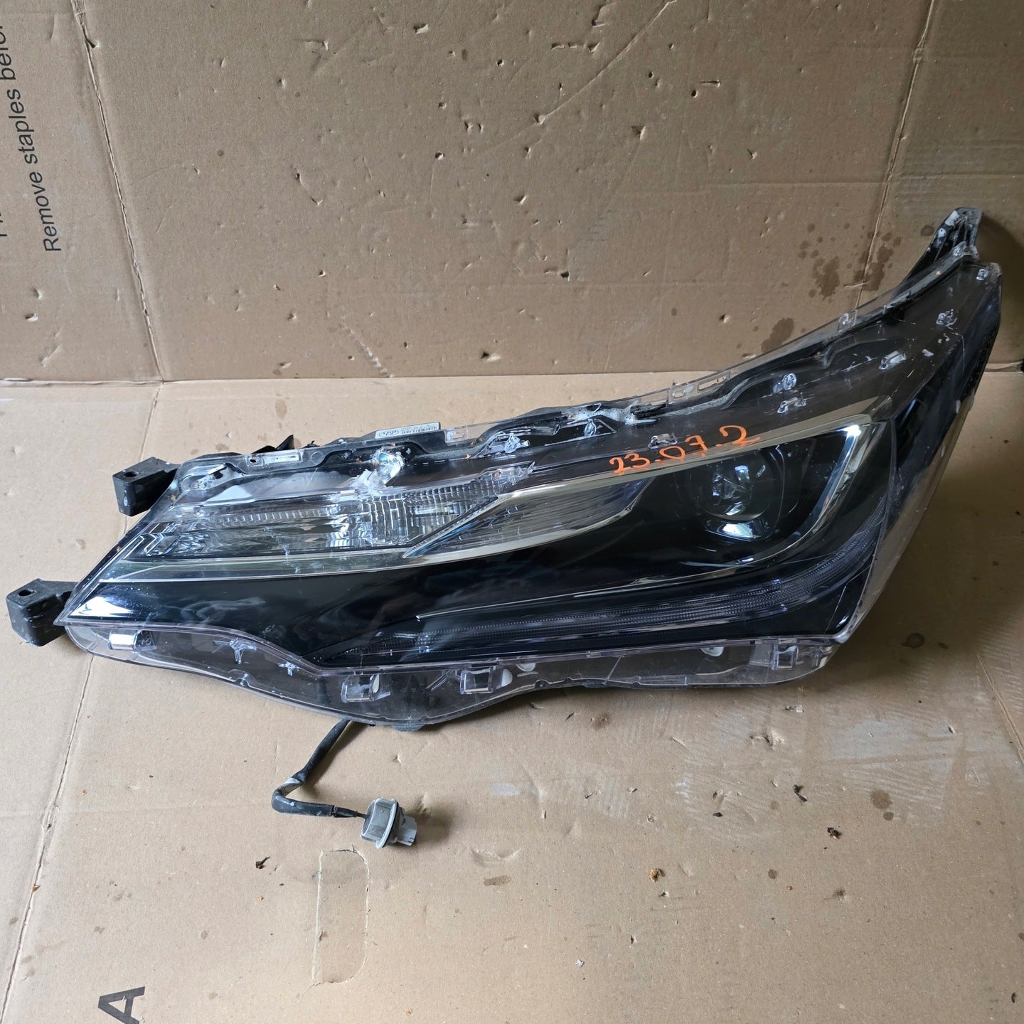 Please be aware that this headlight comes from a previously owned vehicle and has some cosmetic imperfections, including visible scratches on the glass and a damaged bracket. The scratches are superficial and do not impact the headlight's functionality, although they may affect aesthetic appeal for those seeking perfection. The bracket damage can typically be repaired using an original repair kit, enabling a reliable and secure installation that can be performed by individuals with basic mechanical skills or by a professional technician.