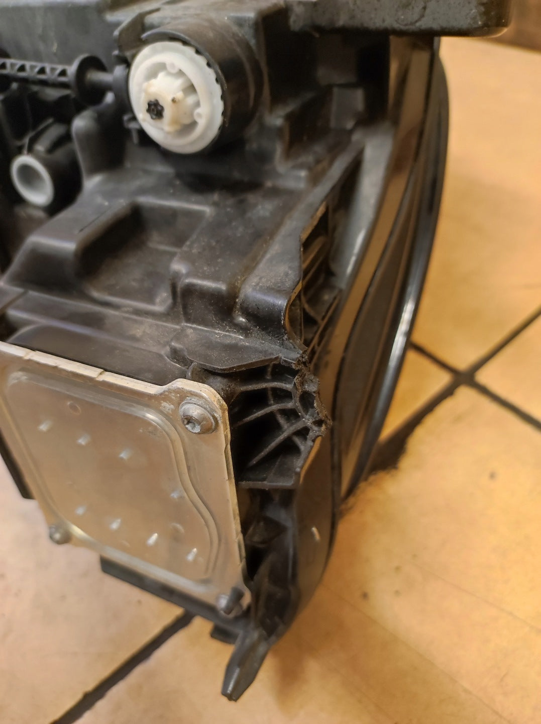 Please be aware that this headlight assembly is from a previously owned vehicle and includes a damaged bracket. However, the bracket damage can often be effectively repaired using an original repair kit, allowing for a reliable and secure installation. This repair can typically be performed by those with basic mechanical skills or by a professional if preferred.
