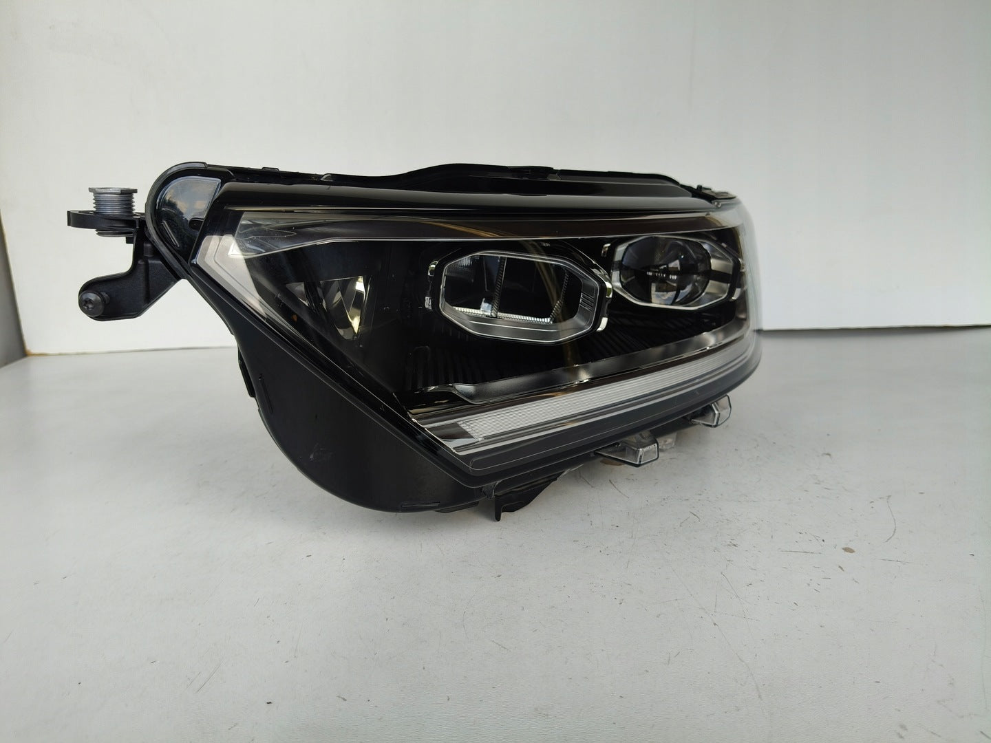 Please be aware that this headlight assembly is from a previously owned vehicle and includes a damaged bracket. However, the bracket damage can often be effectively repaired using an original repair kit, allowing for a reliable and secure installation. This repair can typically be performed by those with basic mechanical skills or by a professional if preferred.