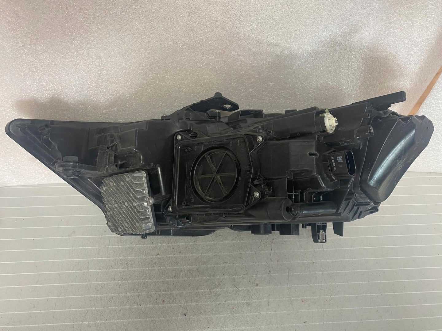 Please be aware that this headlight comes from a previously owned vehicle and has some cosmetic imperfections, including visible scratches on the glass and a damaged bracket. The scratches are superficial and do not impact the headlight's functionality, although they may affect aesthetic appeal for those seeking perfection. The bracket damage can typically be repaired using an original repair kit, enabling a reliable and secure installation that can be performed by individuals with basic mechanical skills or by a professional technician.