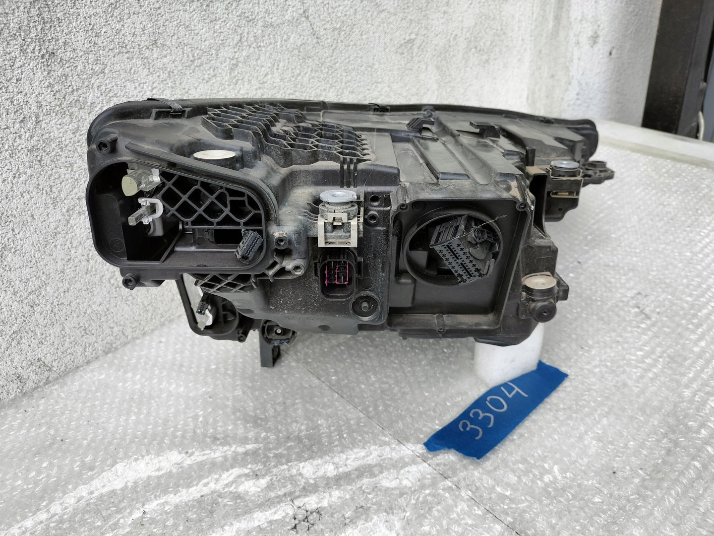 Please note that this headlight comes from a previously owned vehicle and has some cosmetic imperfections. There are visible scratches on the glass which do not affect the functionality but should be considered if aesthetic perfection is a priority. The scratches are superficial and the headlight remains fully operational, providing a practical solution for those looking to replace damaged or malfunctioning headlights without the cost of a brand-new part.
