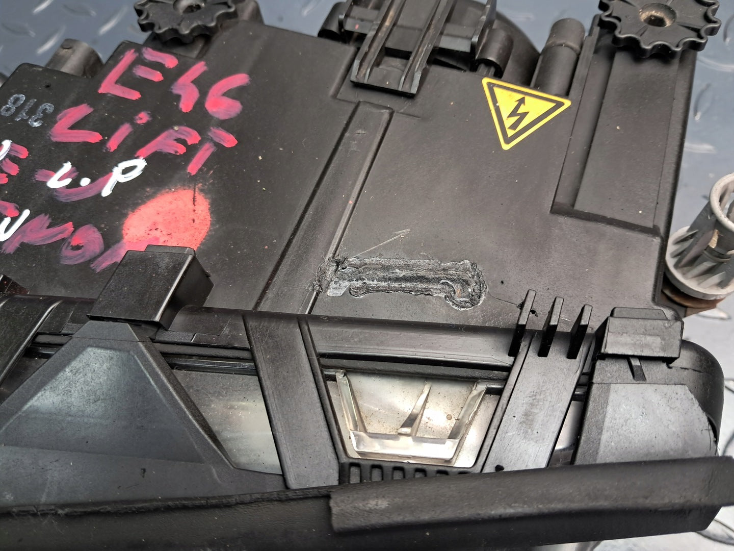 Please be aware that this headlight assembly is from a previously owned vehicle and includes a damaged bracket. However, the bracket damage can often be effectively repaired using an original repair kit, allowing for a reliable and secure installation. This repair can typically be performed by those with basic mechanical skills or by a professional if preferred.