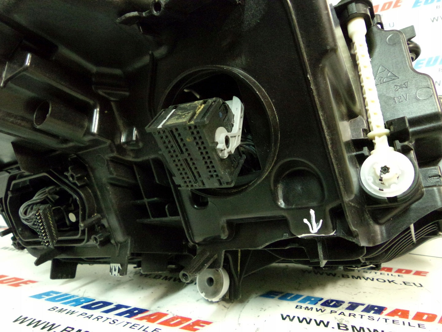 Please be aware that this headlight assembly is from a previously owned vehicle and includes a damaged bracket. However, the bracket damage can often be effectively repaired using an original repair kit, allowing for a reliable and secure installation. This repair can typically be performed by those with basic mechanical skills or by a professional if preferred.