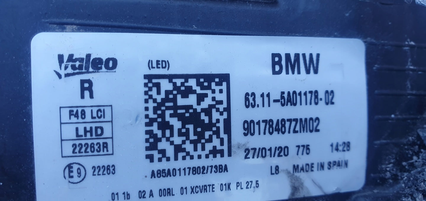 Revitalize your BMW X1 F48 with this durable, cost-effective used headlight. Perfect for direct replacement, it ensures that your car maintains its original look and performance. Get yours today and light up your journey!