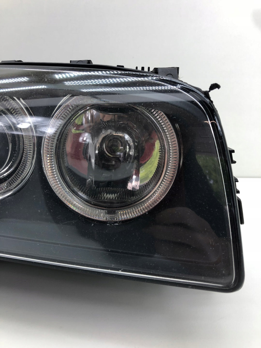 Please be aware that this headlight comes from a previously owned vehicle and has some cosmetic imperfections, including visible scratches on the glass and a damaged bracket. The scratches are superficial and do not impact the headlight's functionality, although they may affect aesthetic appeal for those seeking perfection. The bracket damage can typically be repaired using an original repair kit, enabling a reliable and secure installation that can be performed by individuals with basic mechanical skills or by a professional technician.