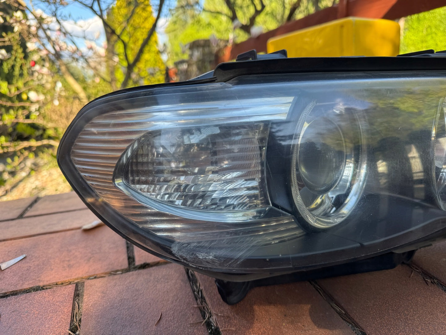 Please be aware that this headlight comes from a previously owned vehicle and has some cosmetic imperfections, including visible scratches on the glass and a damaged bracket. The scratches are superficial and do not impact the headlight's functionality, although they may affect aesthetic appeal for those seeking perfection. The bracket damage can typically be repaired using an original repair kit, enabling a reliable and secure installation that can be performed by individuals with basic mechanical skills or by a professional technician.