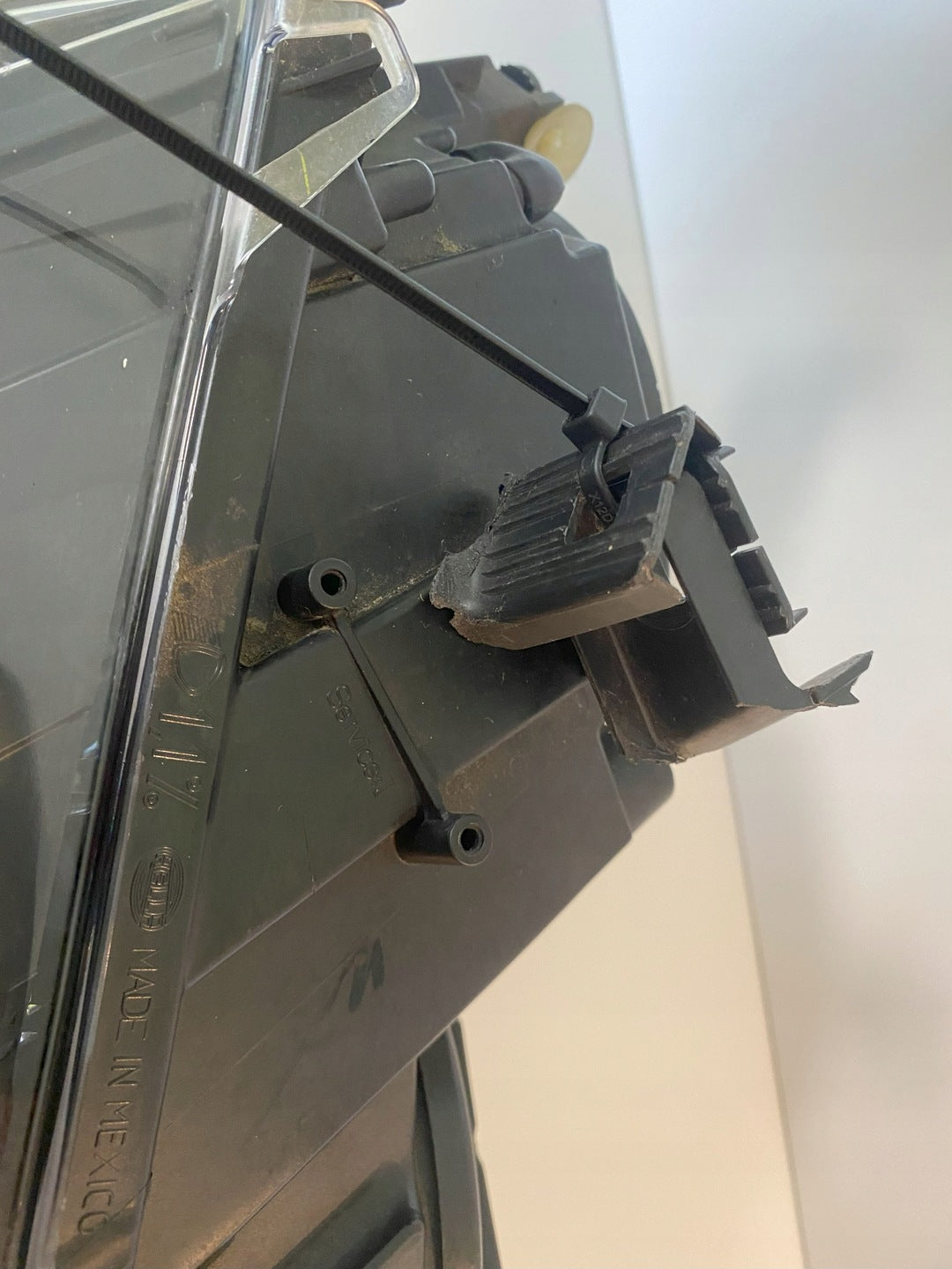 Please be aware that this headlight comes from a previously owned vehicle and has some cosmetic imperfections, including visible scratches on the glass and a damaged bracket. The scratches are superficial and do not impact the headlight's functionality, although they may affect aesthetic appeal for those seeking perfection. The bracket damage can typically be repaired using an original repair kit, enabling a reliable and secure installation that can be performed by individuals with basic mechanical skills or by a professional technician.