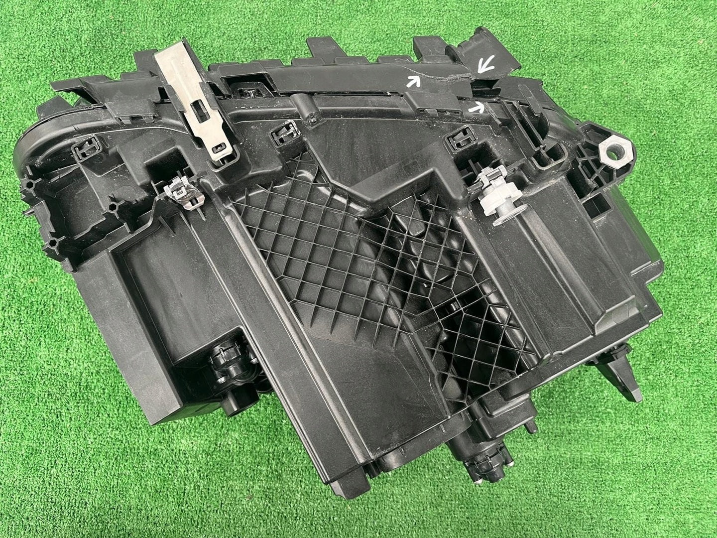 Please be aware that this headlight assembly is from a previously owned vehicle and includes a damaged bracket. However, the bracket damage can often be effectively repaired using an original repair kit, allowing for a reliable and secure installation. This repair can typically be performed by those with basic mechanical skills or by a professional if preferred.
