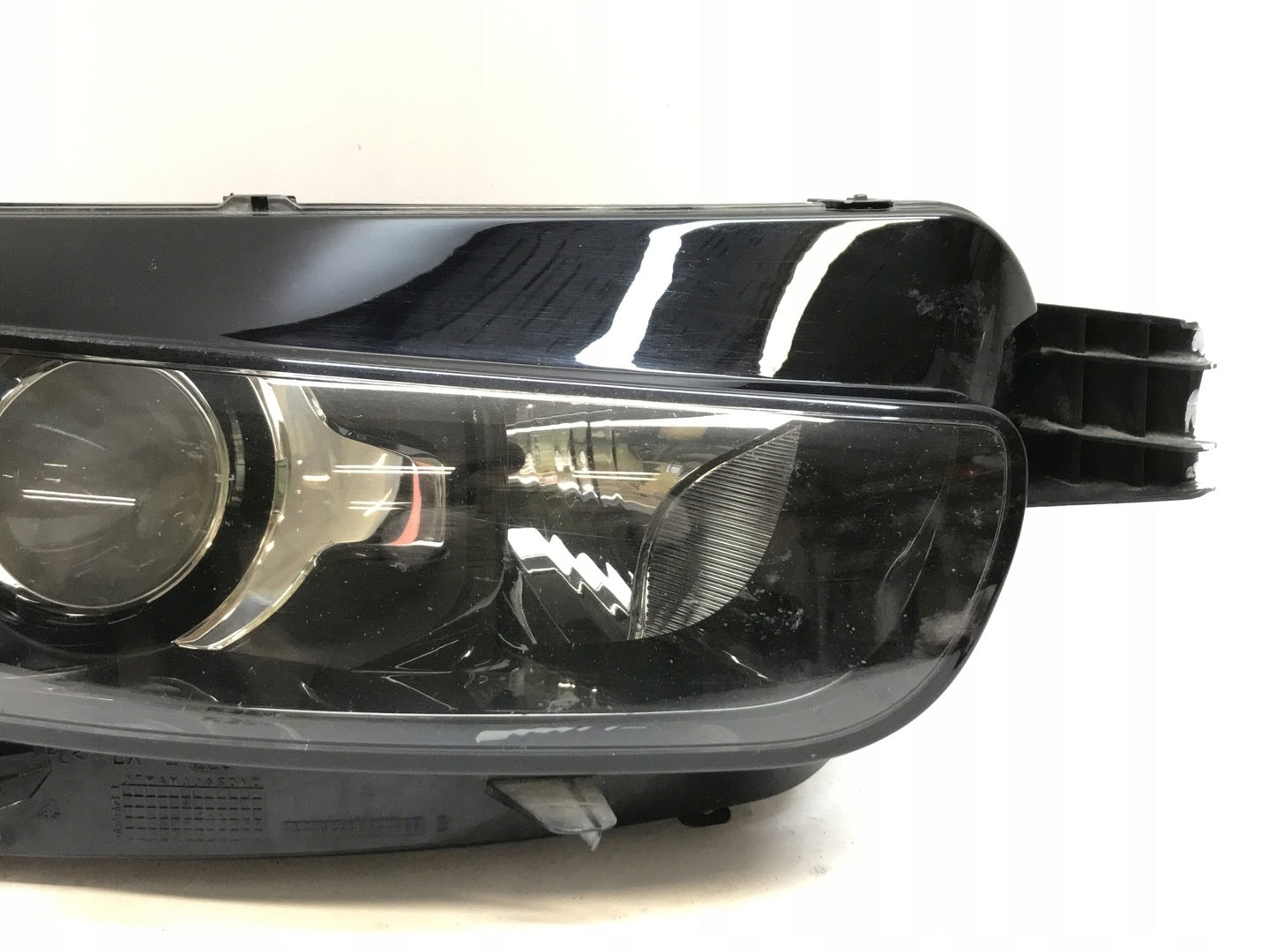 Please be aware that this headlight comes from a previously owned vehicle and has some cosmetic imperfections, including visible scratches on the glass and a damaged bracket. The scratches are superficial and do not impact the headlight's functionality, although they may affect aesthetic appeal for those seeking perfection. The bracket damage can typically be repaired using an original repair kit, enabling a reliable and secure installation that can be performed by individuals with basic mechanical skills or by a professional technician.