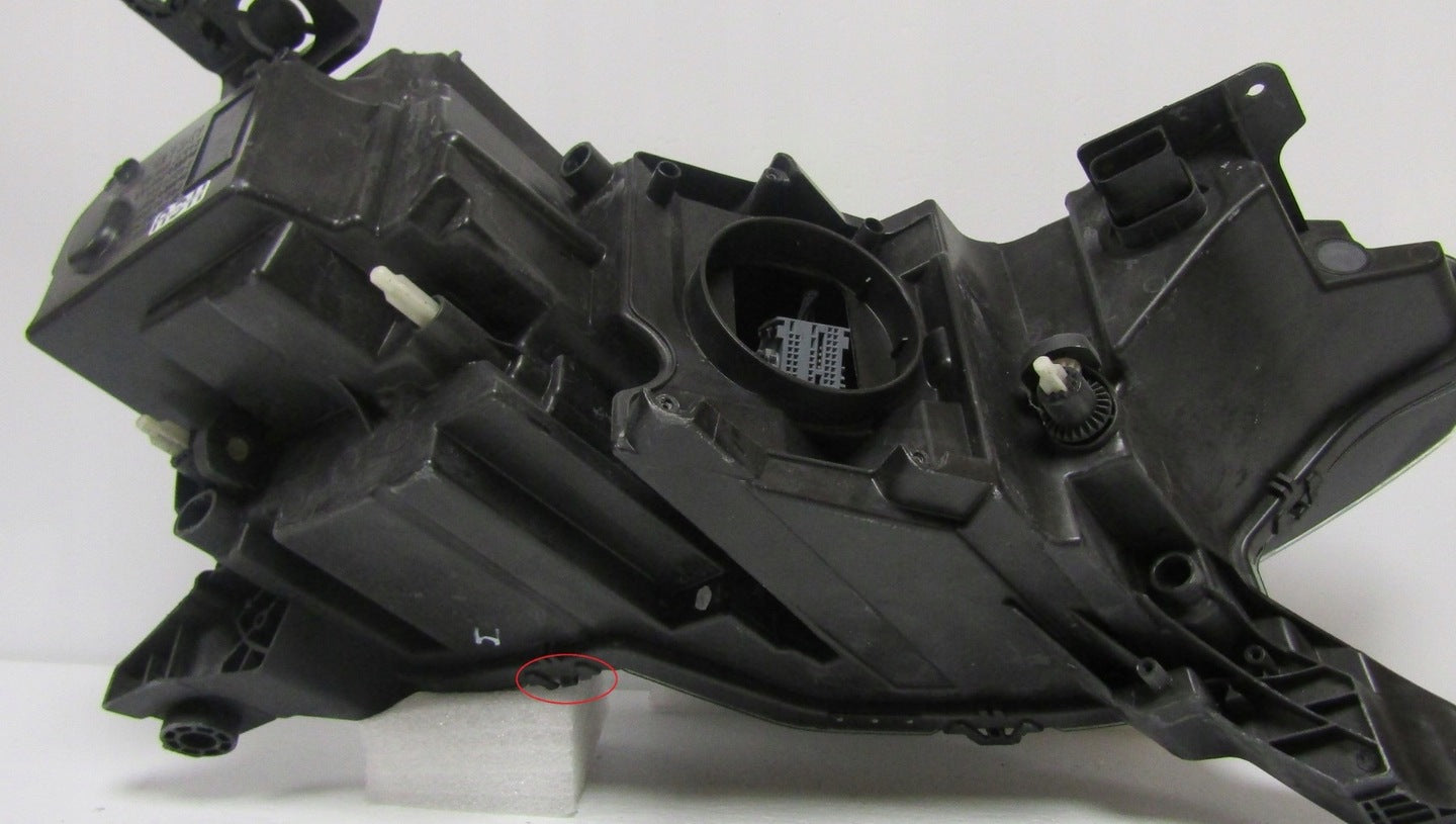 Please be aware that this headlight assembly is from a previously owned vehicle and includes a damaged bracket. However, the bracket damage can often be effectively repaired using an original repair kit, allowing for a reliable and secure installation. This repair can typically be performed by those with basic mechanical skills or by a professional if preferred.