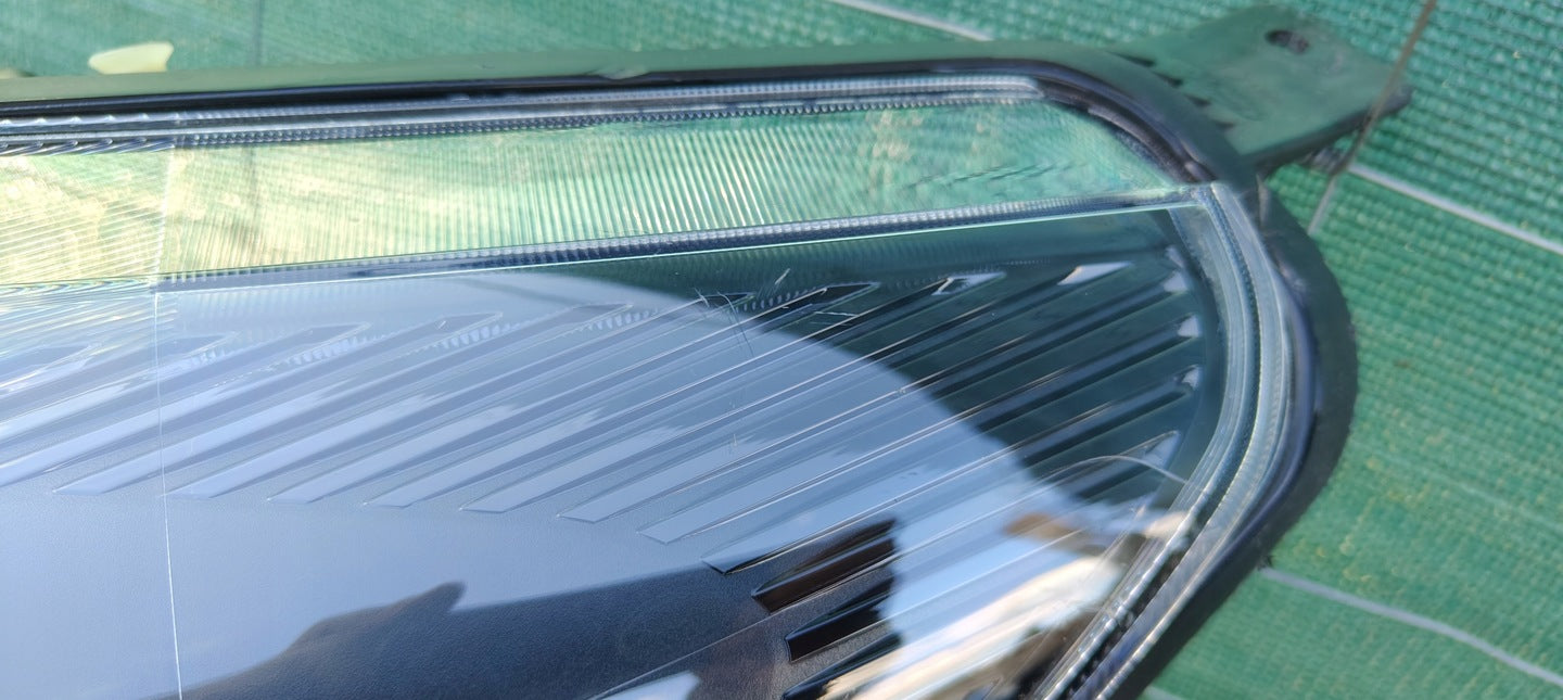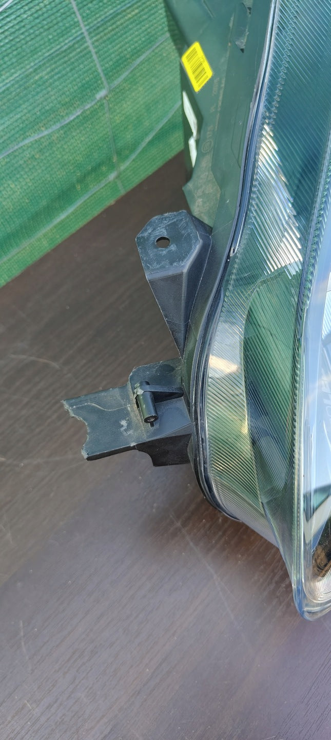 Please be aware that this headlight comes from a previously owned vehicle and has some cosmetic imperfections, including visible scratches on the glass and a damaged bracket. The scratches are superficial and do not impact the headlight's functionality, although they may affect aesthetic appeal for those seeking perfection. The bracket damage can typically be repaired using an original repair kit, enabling a reliable and secure installation that can be performed by individuals with basic mechanical skills or by a professional technician.