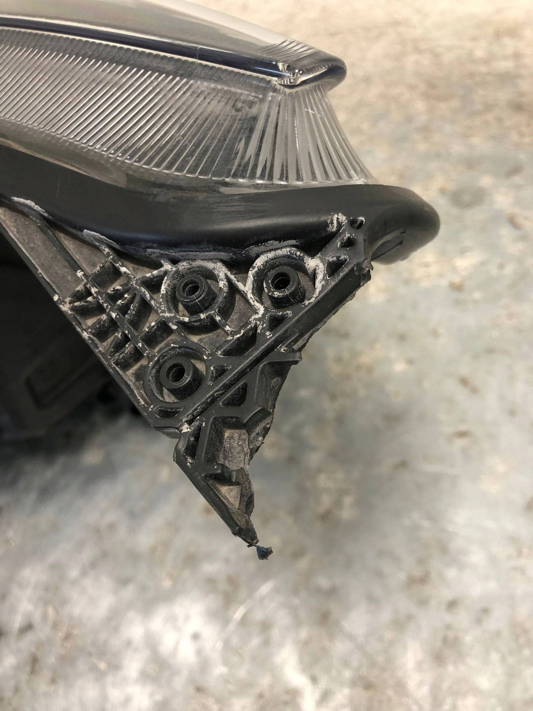 Please be aware that this headlight assembly is from a previously owned vehicle and includes a damaged bracket. However, the bracket damage can often be effectively repaired using an original repair kit, allowing for a reliable and secure installation. This repair can typically be performed by those with basic mechanical skills or by a professional if preferred.
