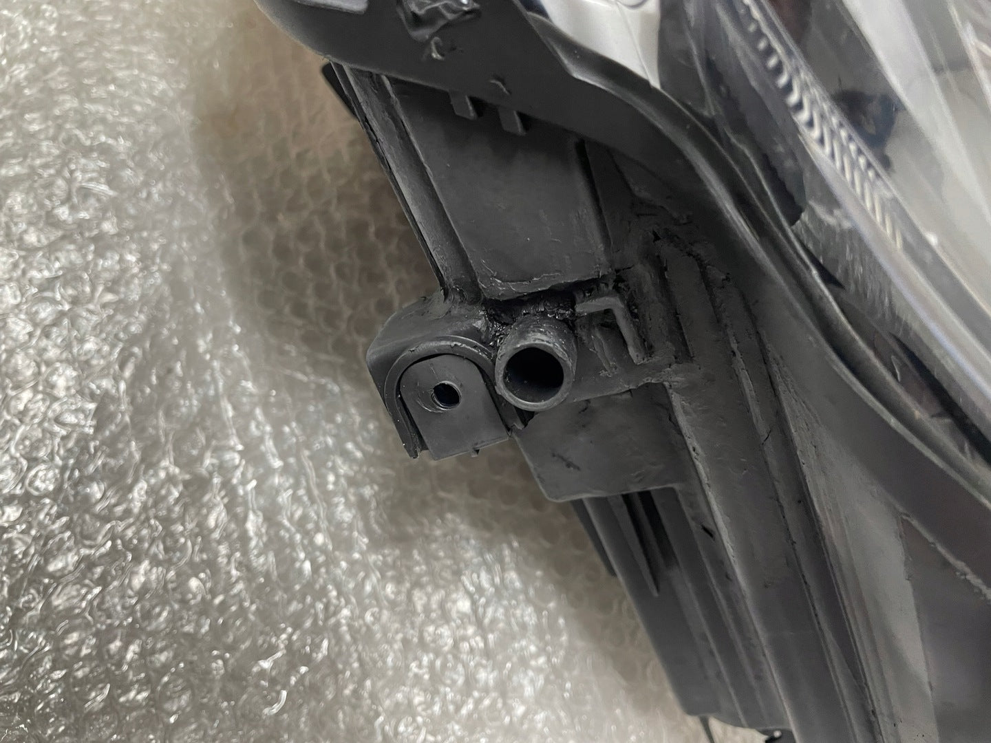 Please be aware that this headlight assembly is from a previously owned vehicle and includes a damaged bracket. However, the bracket damage can often be effectively repaired using an original repair kit, allowing for a reliable and secure installation. This repair can typically be performed by those with basic mechanical skills or by a professional if preferred.