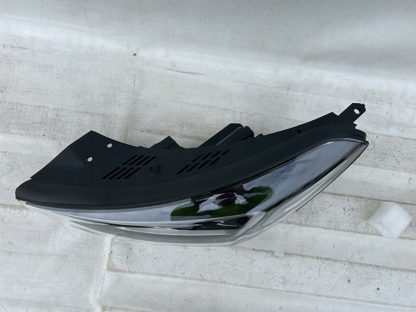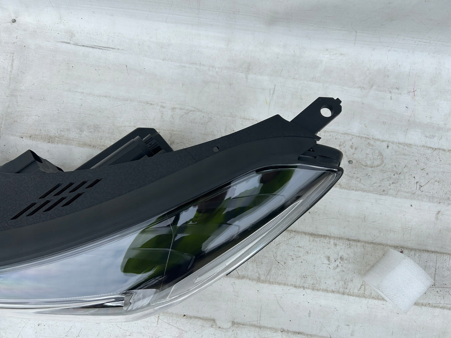 This assembly comes from a previously owned vehicle and includes a housing that has been professionally repaired. The repair restores the structural integrity of the headlight without compromising its performance or durability. The meticulous repair process ensures that the headlight operates as intended, with its appearance and functionality closely matching that of an original new part.