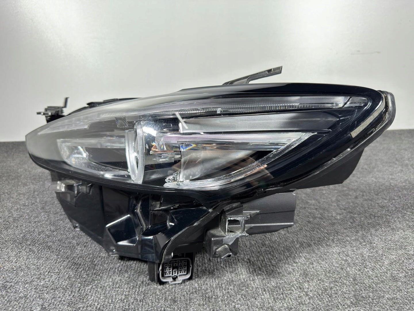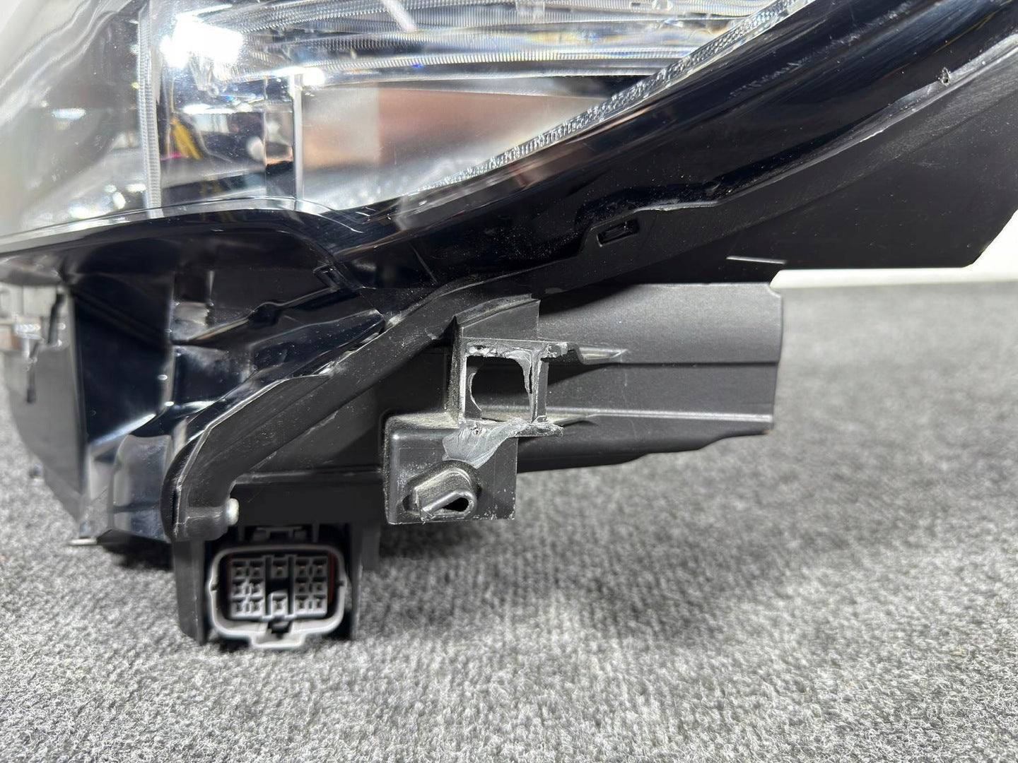 Please be aware that this headlight assembly is from a previously owned vehicle and includes a damaged bracket. However, the bracket damage can often be effectively repaired using an original repair kit, allowing for a reliable and secure installation. This repair can typically be performed by those with basic mechanical skills or by a professional if preferred.
