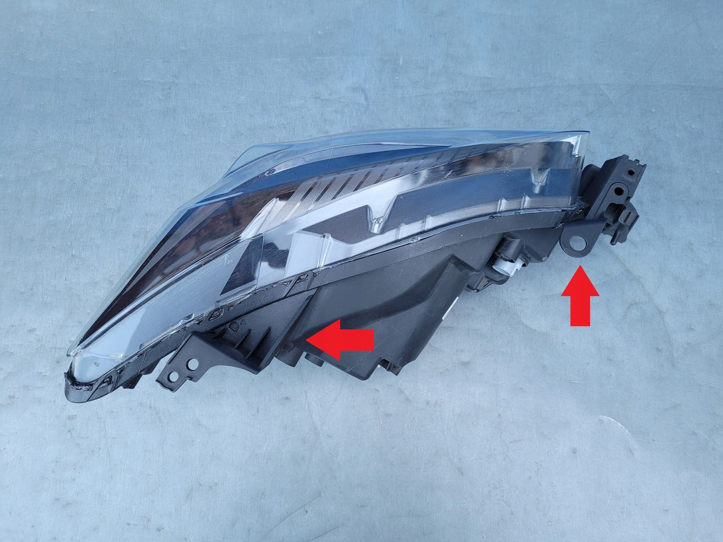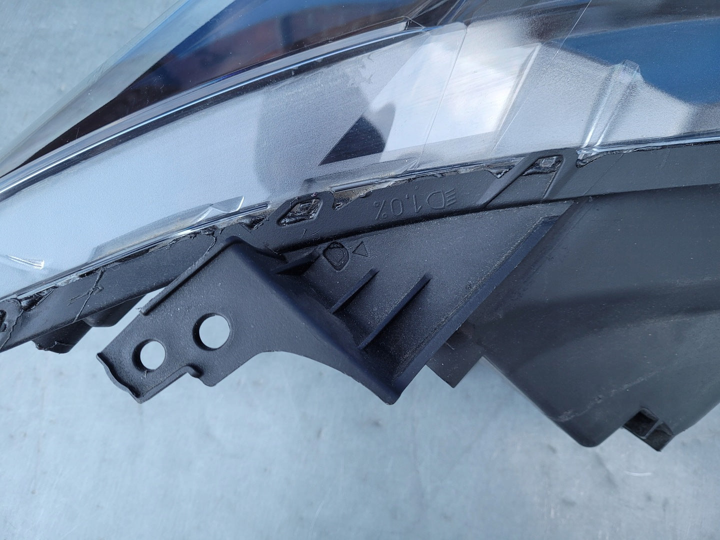 Please be aware that this headlight comes from a previously owned vehicle and has some cosmetic imperfections, including visible scratches on the glass and a damaged bracket. The scratches are superficial and do not impact the headlight's functionality, although they may affect aesthetic appeal for those seeking perfection. The bracket damage can typically be repaired using an original repair kit, enabling a reliable and secure installation that can be performed by individuals with basic mechanical skills or by a professional technician.
