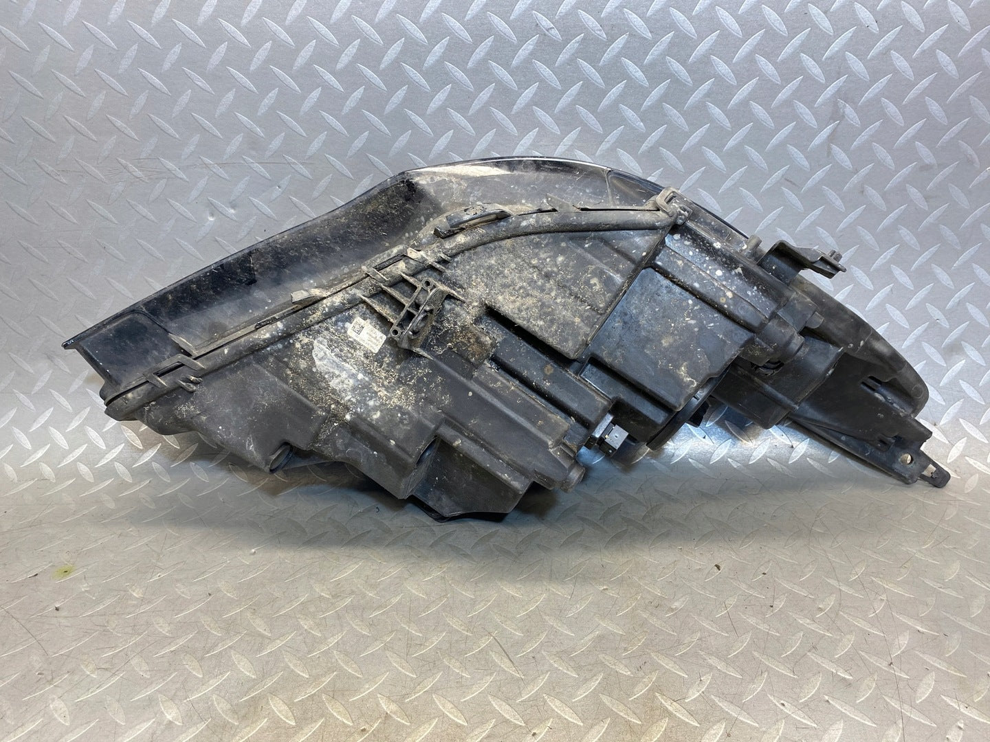 Please be aware that this headlight comes from a previously owned vehicle and has some cosmetic imperfections, including visible scratches on the glass and a damaged bracket. The scratches are superficial and do not impact the headlight's functionality, although they may affect aesthetic appeal for those seeking perfection. The bracket damage can typically be repaired using an original repair kit, enabling a reliable and secure installation that can be performed by individuals with basic mechanical skills or by a professional technician.