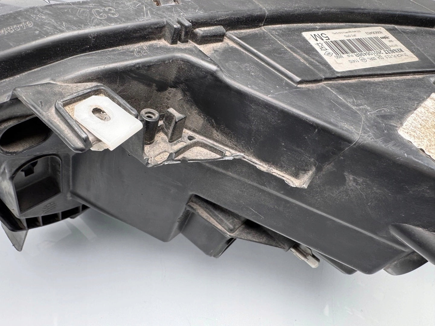 Please be aware that this headlight comes from a previously owned vehicle and has some cosmetic imperfections, including visible scratches on the glass and a damaged bracket. The scratches are superficial and do not impact the headlight's functionality, although they may affect aesthetic appeal for those seeking perfection. The bracket damage can typically be repaired using an original repair kit, enabling a reliable and secure installation that can be performed by individuals with basic mechanical skills or by a professional technician.
