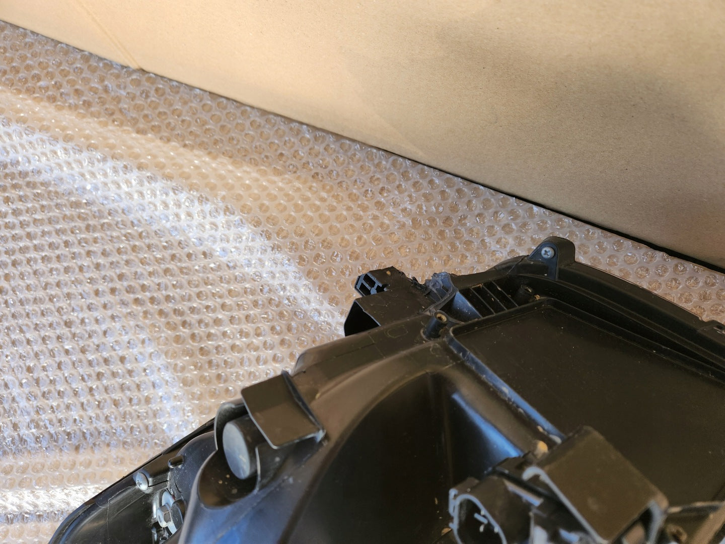 Please be aware that this headlight comes from a previously owned vehicle and has some cosmetic imperfections, including visible scratches on the glass and a damaged bracket. The scratches are superficial and do not impact the headlight's functionality, although they may affect aesthetic appeal for those seeking perfection. The bracket damage can typically be repaired using an original repair kit, enabling a reliable and secure installation that can be performed by individuals with basic mechanical skills or by a professional technician.