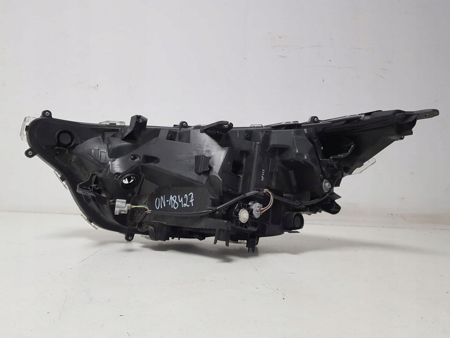 Please be aware that this headlight assembly is from a previously owned vehicle and includes a damaged bracket. However, the bracket damage can often be effectively repaired using an original repair kit, allowing for a reliable and secure installation. This repair can typically be performed by those with basic mechanical skills or by a professional if preferred.