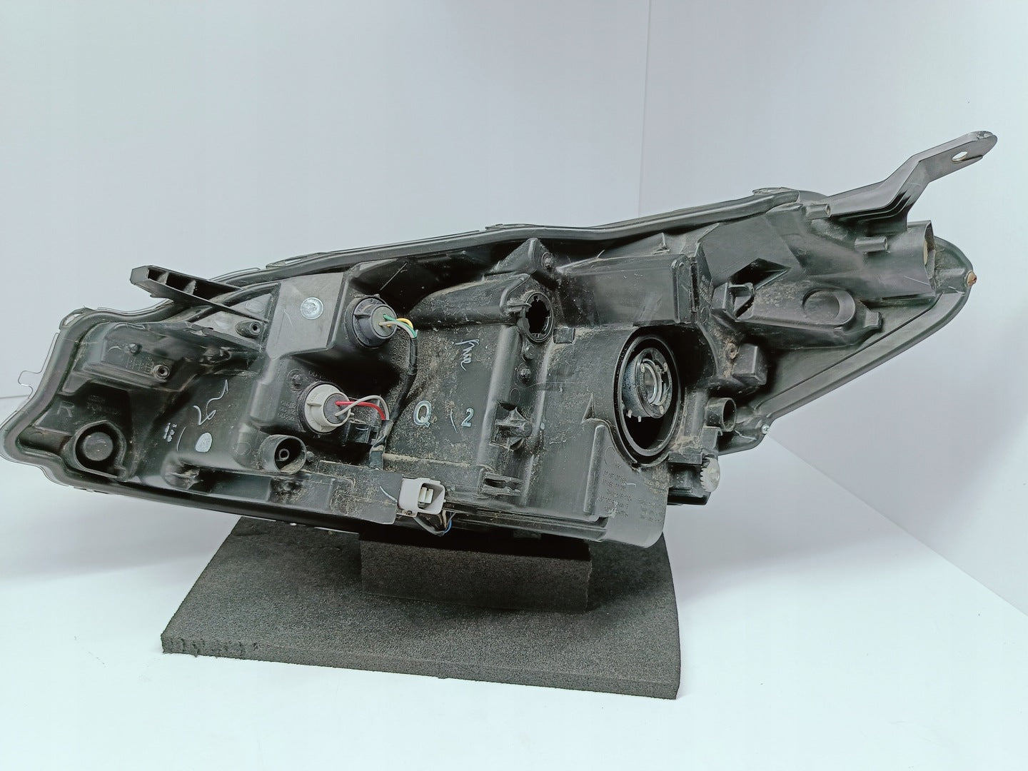 Please be aware that this headlight comes from a previously owned vehicle and has some cosmetic imperfections, including visible scratches on the glass and a damaged bracket. The scratches are superficial and do not impact the headlight's functionality, although they may affect aesthetic appeal for those seeking perfection. The bracket damage can typically be repaired using an original repair kit, enabling a reliable and secure installation that can be performed by individuals with basic mechanical skills or by a professional technician.