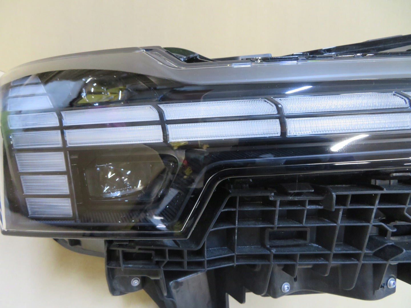 Please be aware that this headlight assembly is from a previously owned vehicle and includes a damaged bracket. However, the bracket damage can often be effectively repaired using an original repair kit, allowing for a reliable and secure installation. This repair can typically be performed by those with basic mechanical skills or by a professional if preferred.